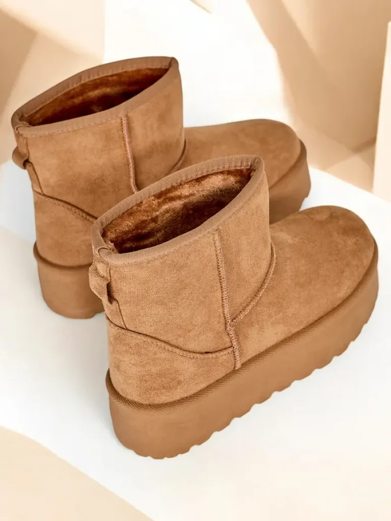 - Świetne damskie zimowe buty typu śniegowce na platformie. Cholewka wykonana jest ze skóry ekologicznej zamszowej, środek ocieplony futerkiem. Idealna baza na zimę!