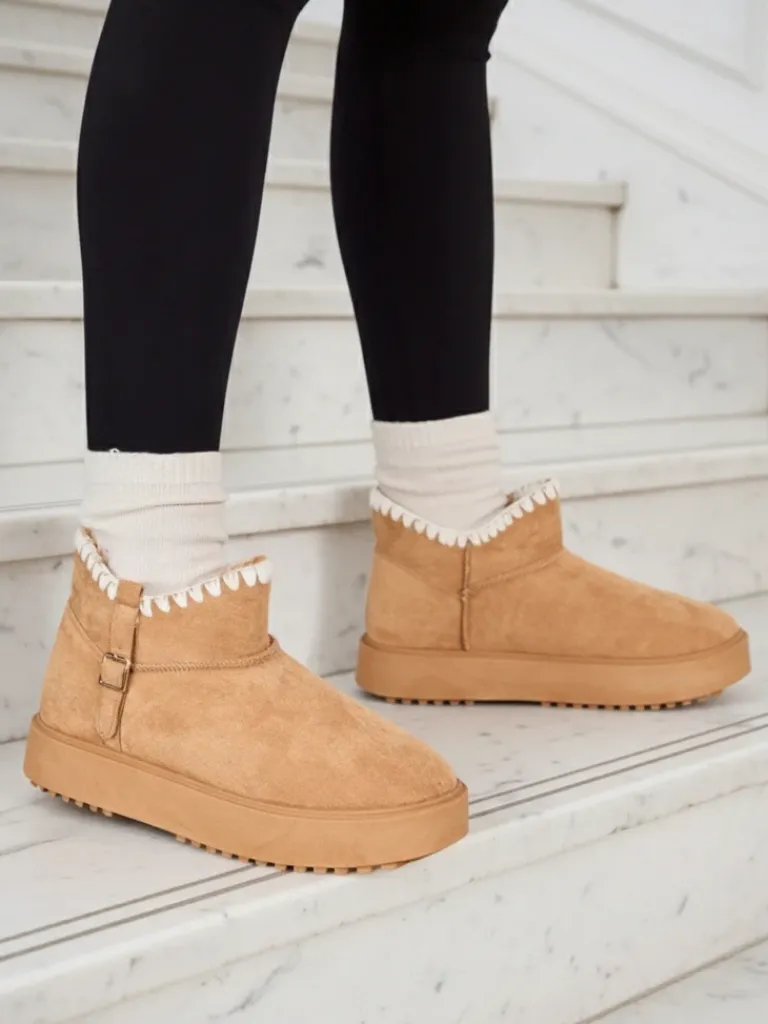 - Świetne damskie zimowe buty typu śniegowce na platformie. Cholewka wykonana jest ze skóry ekologicznej zamszowej, środek ocieplony futerkiem. Idealna baza na zimę!