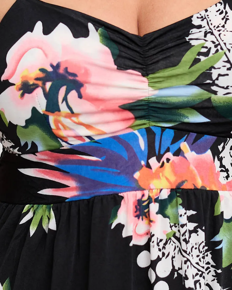 - Sukienka do kolan z kwiatowym motywem. Model o luźnym kroju, posiada odcięcie w pasie z gumką oraz regulowane ramiączka. Doskonała sukienka na lato! UWAGA: Dokładność pomiaru (+/-) 1 cm.