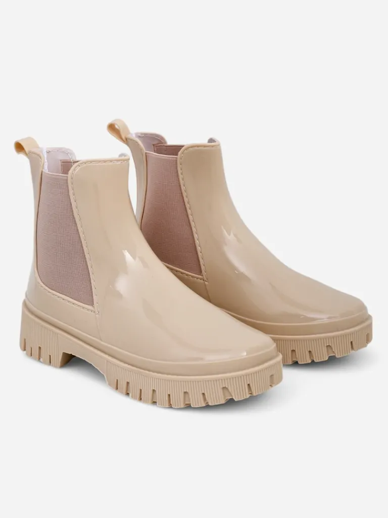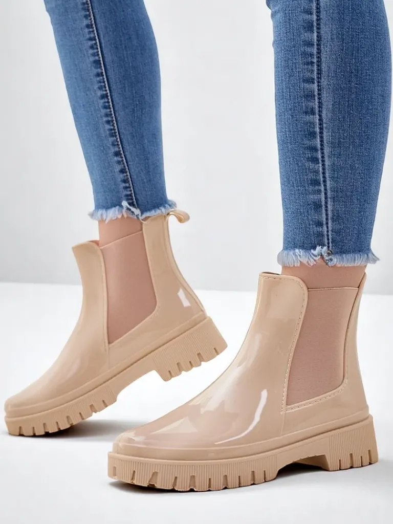 - Klasyczne damskie kalosze wykonane z tworzywa gumowego z lakierowanym wykończeniem. Wkładka to materiał tkaninowy. Obuwie idealne na jesienne deszczowe dni!