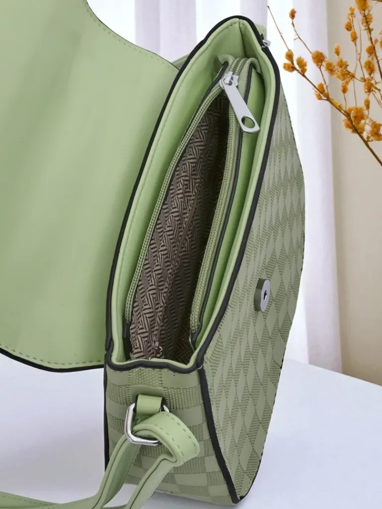 - Mała torebka damska z eko skóry w modną kratkę. Zapięcie na zamek, regulowany pasek i jedna komora zapewniają wygodę i styl na co dzień. Idealna na telefon, portfel i drobiazgi.