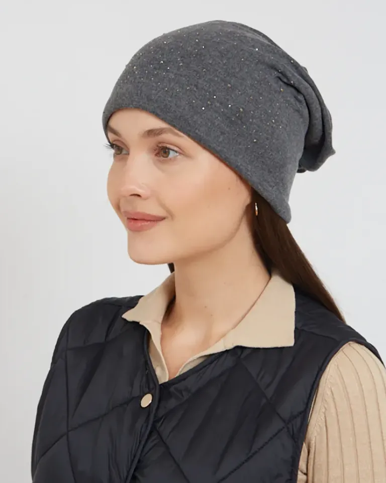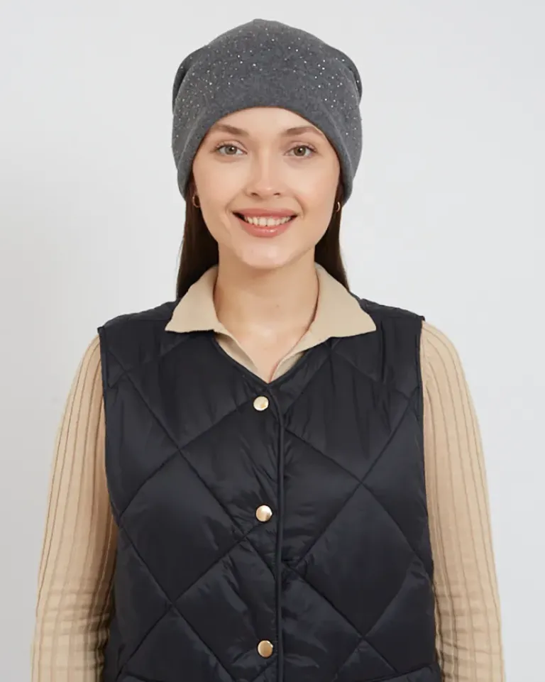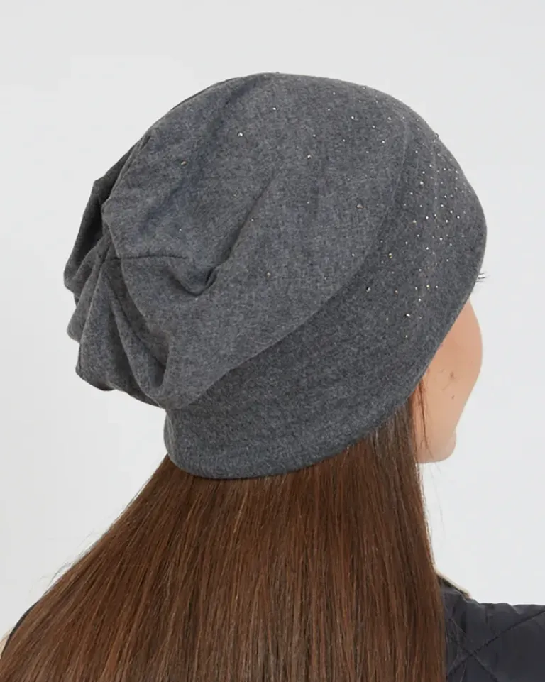 - Damska czapka ocieplana delikatnym futerkiem i zdobiona cyrkoniami. Idealna na chłodniejsze dni!