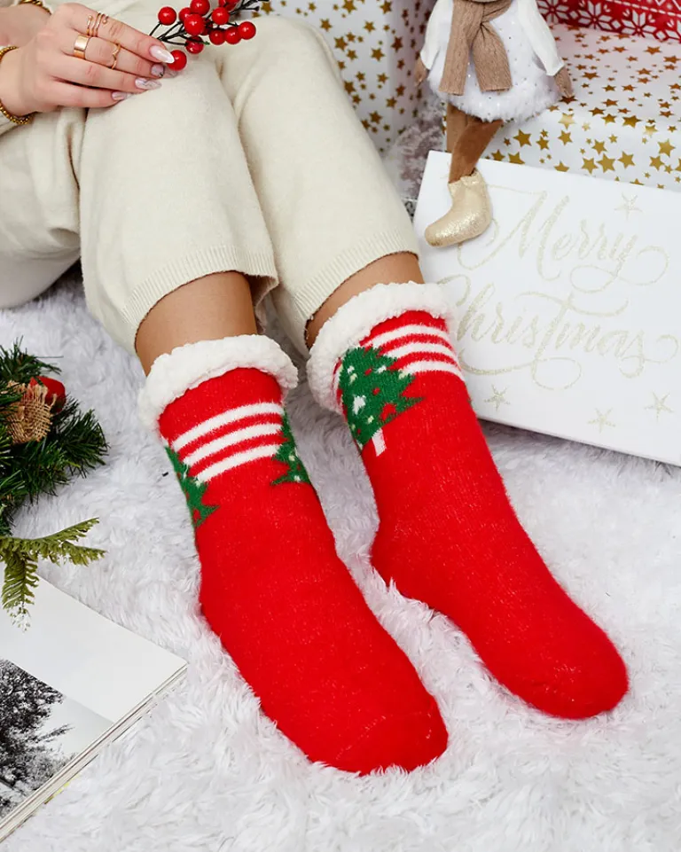 - Przepiękne damskie grube skarpety wykończone świątecznym printem. W środku ocieplane białym, cieplutkim kożuszkiem. Skarpetki świetnie się sprawdzą na chłodniejsze, zimowe wieczory!