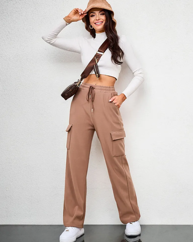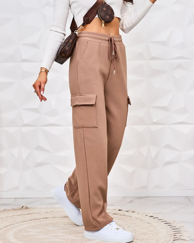 - Kultowe damskie szerokie spodnie typu bojówki, wykonane z przyjemnej tkaniny. Model posiada rozciągliwą gumkę w pasie i cztery wsuwane kieszenie. Ocieplany futerkiem. UWAGA: Dokładność pomiaru (+/-) 1 cm.