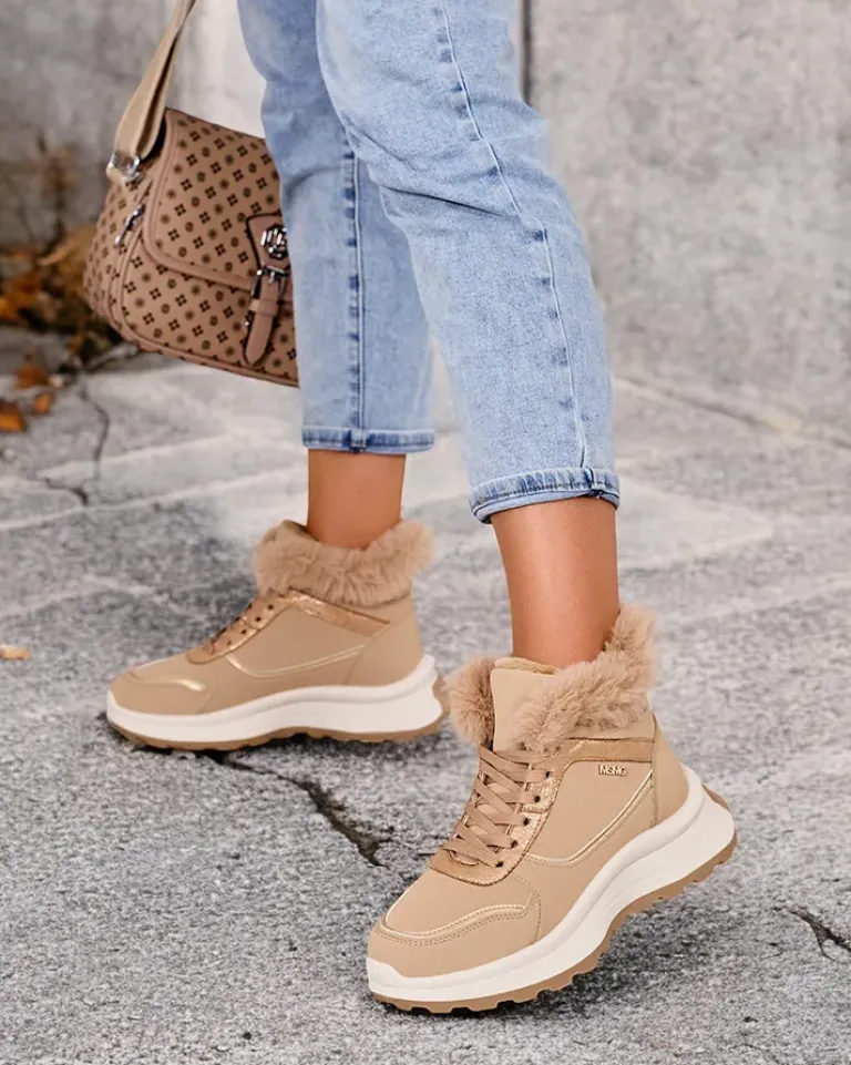 - Sportowe sneakersy damskie na grubszej podeszwie. Cholewka sznurowana, wykonana z nubuku ekologicznego. Wnętrze w całości ocieplone futerkiem. Idealne do sportowych outfitów!
