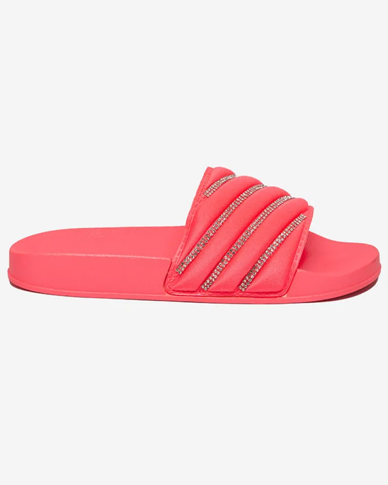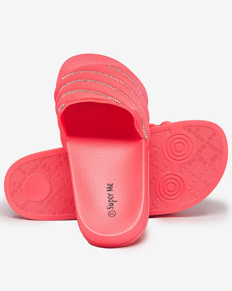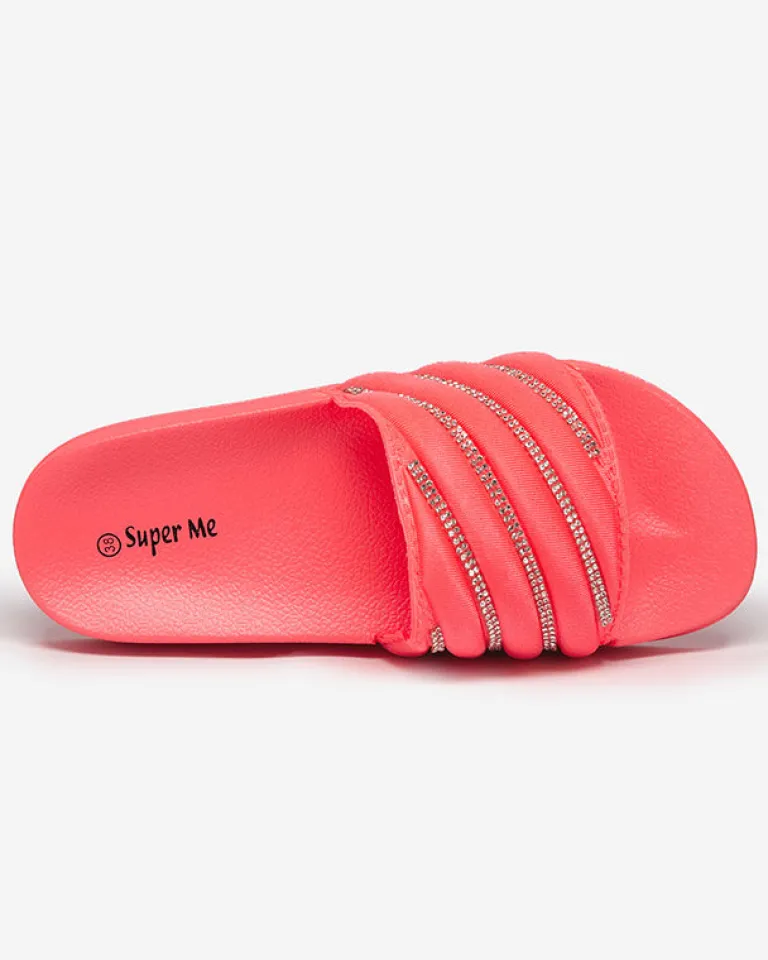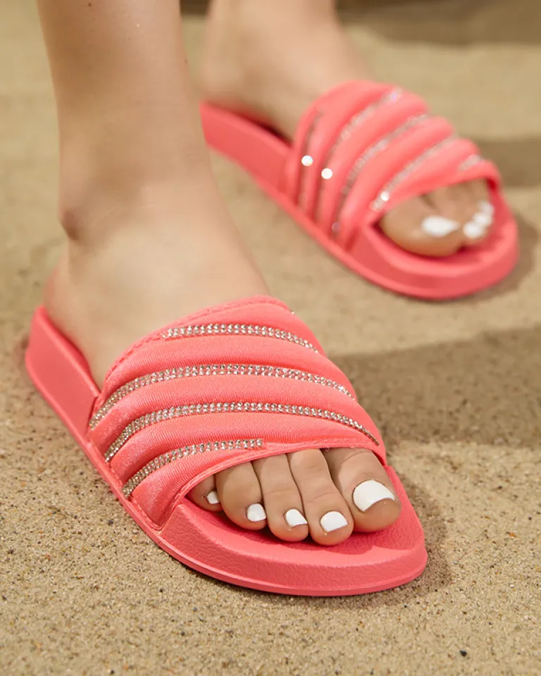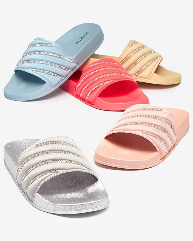- Prześliczne damskie klapki na płaskiej podeszwie, zdobione drobnymi cyrkoniami, wkładka wykonana z tworzywa gumowego. Ta piękna para musi znaleźć się w Twojej walizce podczas urlopu!