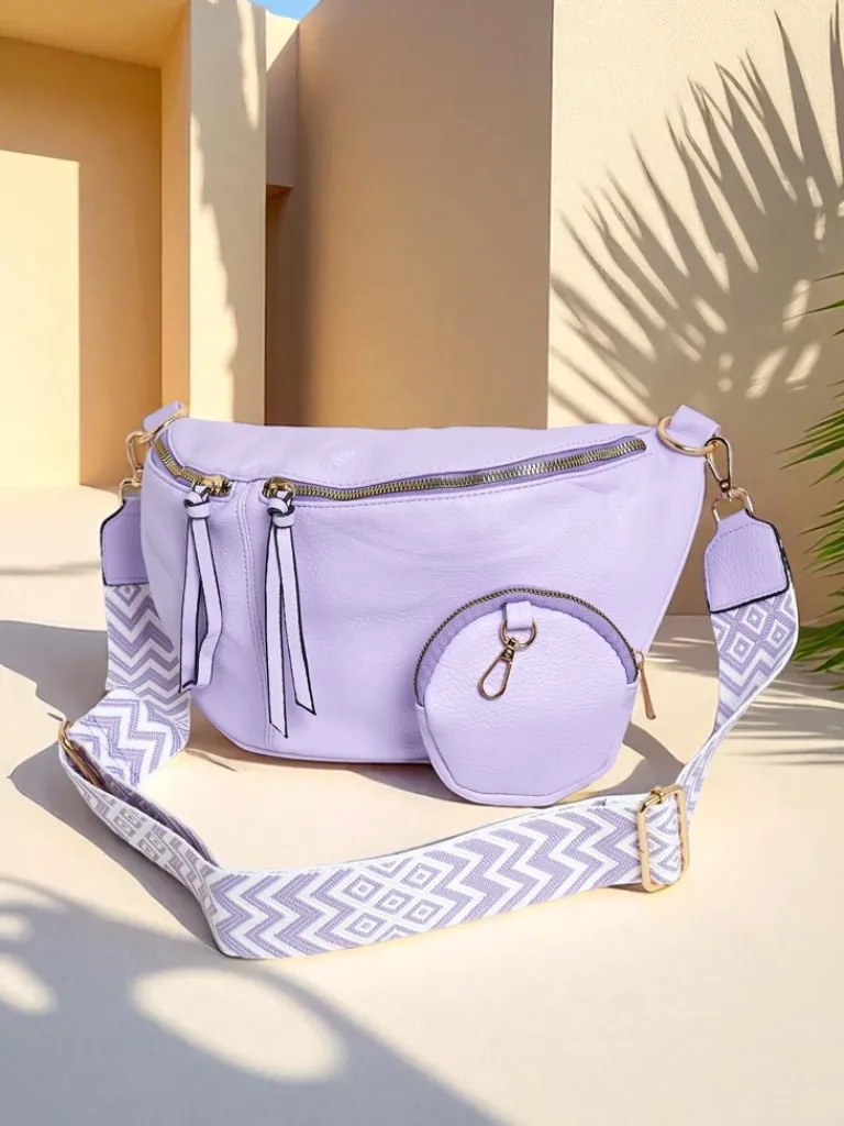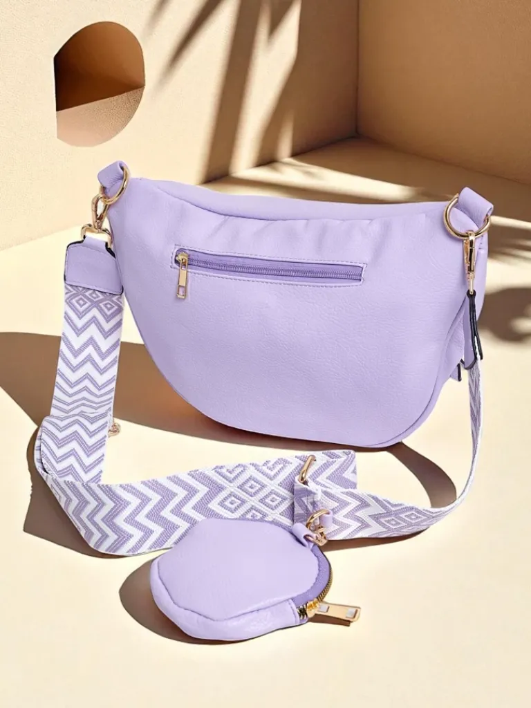 - Stylowa, mała torebka damska o półokrągłym kształcie, wykonana z eko skóry. Jedna komora, kieszonka zewnętrzna, odpinany, regulowany pasek i dopinana saszetka. Funkcjonalna elegancja na każdy dzień.