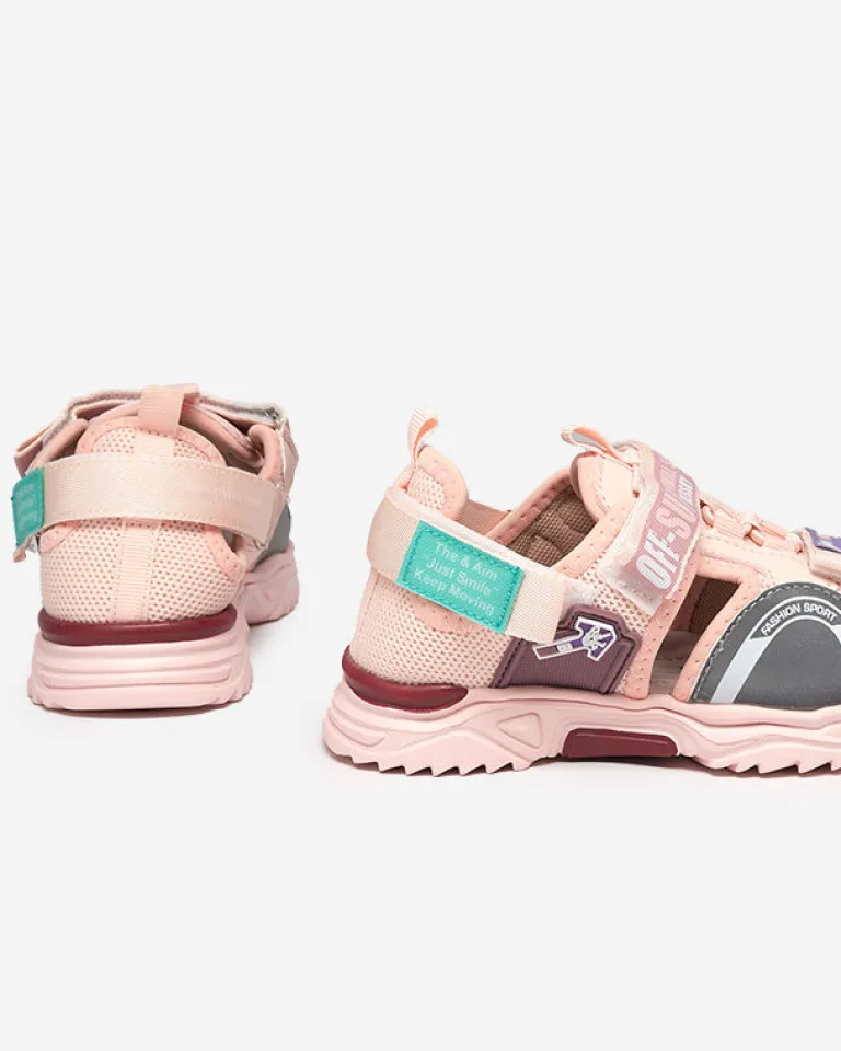 - Modne i wygodne sandały dziecięce na płaskiej podeszwie. Wykonane z połączenia tkaniny i eko-nubuku, zapinane na rzepy. Model z zakrytą piętą – świetne na wakacyjne dni!