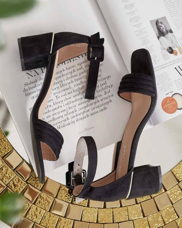- Sandałki na słupku wykonane w całości z eko skóry zamszowej, zapinane na sprzączkę. Połączenie stylu i wygody. Słupek nadaje subtelnej elegancji, a sprzączka ułatwia ich zakładanie. Doskonałe na letnie dni i wieczorne wyjścia!