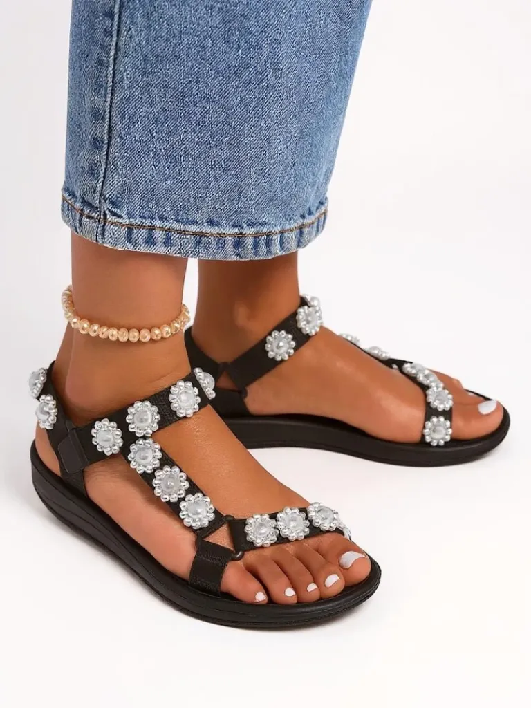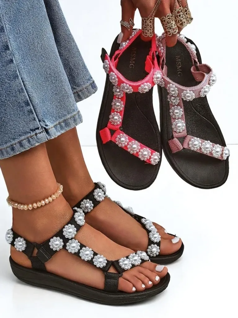 - Sportowe damskie sandały na płaskiej podeszwie, posiadają tkaninowe paseczki zdobione delikatnymi kwiatkami i wkładkę z eko skóry. Prezentowane obuwie damskie jest zapinane na rzepy. Dobrze przylegają do stopy!