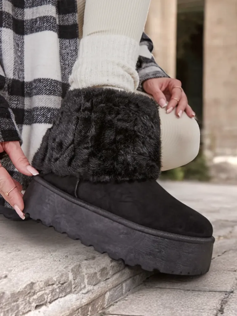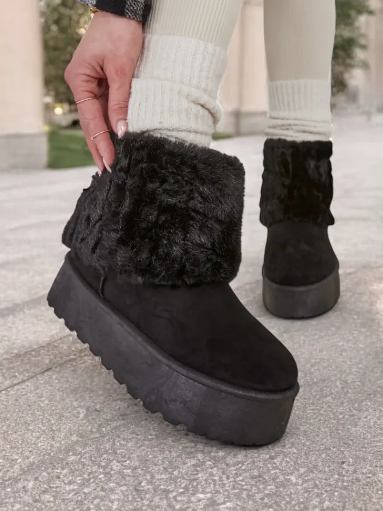 - Damskie obuwie typu śniegowce z cholewką wykonaną z połączenia eko skóry oraz przyjemnego futerka. W środku futerko, obuwie posiadają wsuwaną cholewkę. Idealne na zimę!