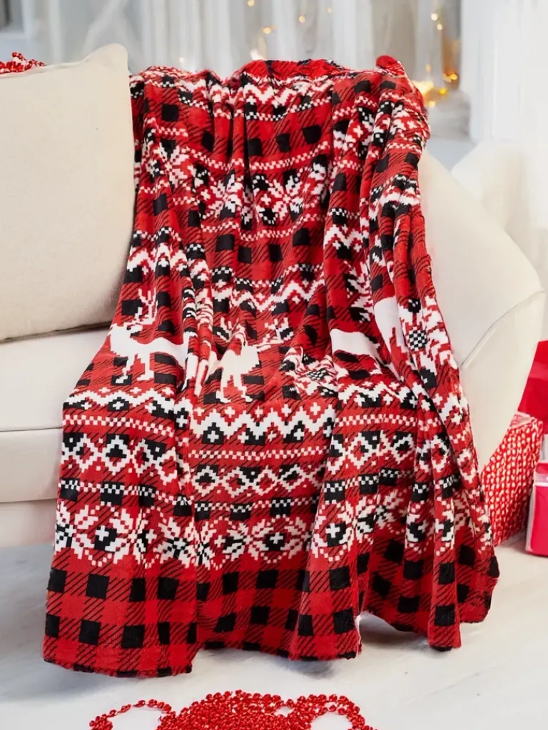 - Świąteczny koc z miękkiego poliestru, bardzo ciepły i przyjemny w dotyku. Idealna narzutka pasująca do każdego wnętrza. Perfekcyjny dodatek na Twoje łóżko w ten wyjątkowy czas!