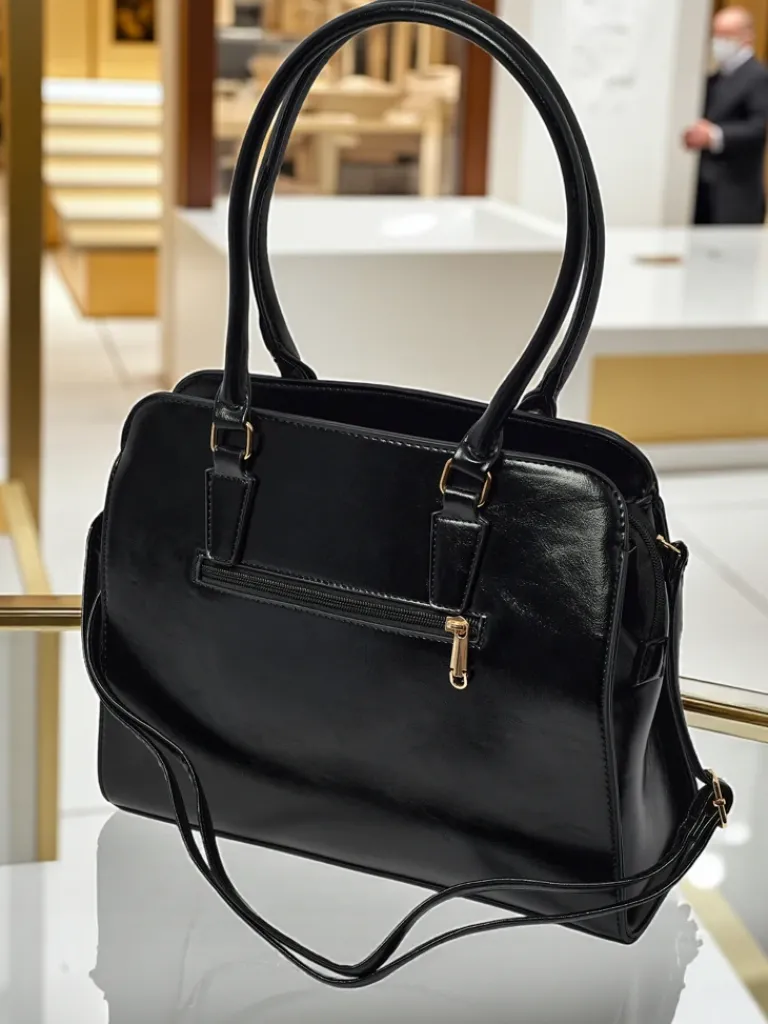 - Elegancka torebka damska eko skórzana z tłoczeniem – idealna do stylizacji biznesowych. Model posiada 1 komorę z przegrodą i 4 kieszonki. Dodatkowo odpinany, regulowany pasek.