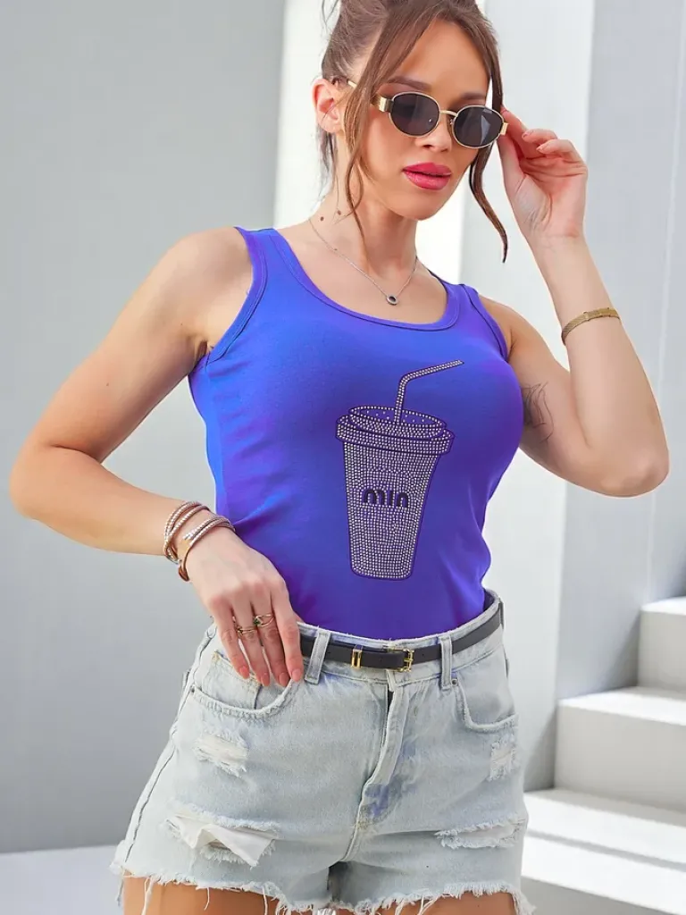 Online Bawełniana bluzka damska na ramiączkach z kubeczkiem z cyrkonii Bluzki / Koszule / Koszulki