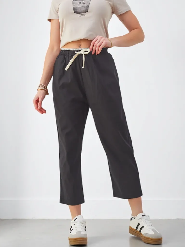 - Rewelacyjne szerokie spodnie wykonane z lekkiej tkaniny, model posiada 2 kieszenie, gumę i troczki w pasie. Must have w Twojej szafie! UWAGA: Dokładność pomiaru (+/-) 1 cm.