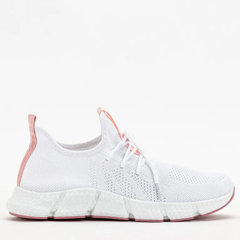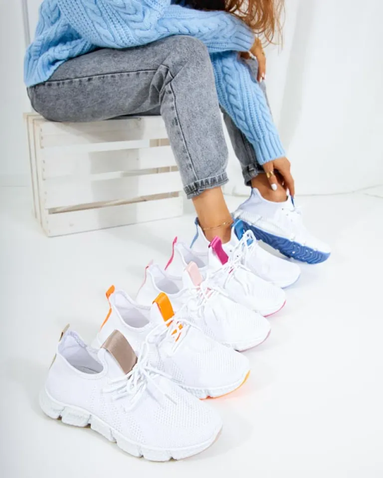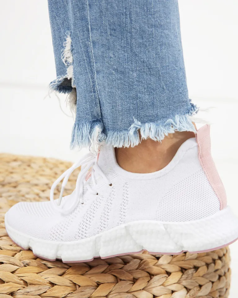 - Sportowe buty damskie na płaskiej podeszwie. Cholewka sznurowana, wykonana z tkaniny. Solidnie wykonane i bardzo wygodne dzięki miękkiej, gumowej podeszwie.