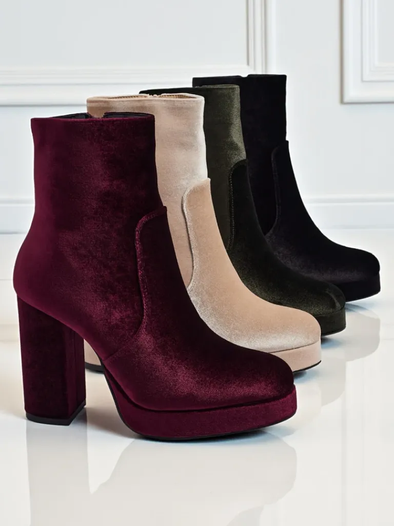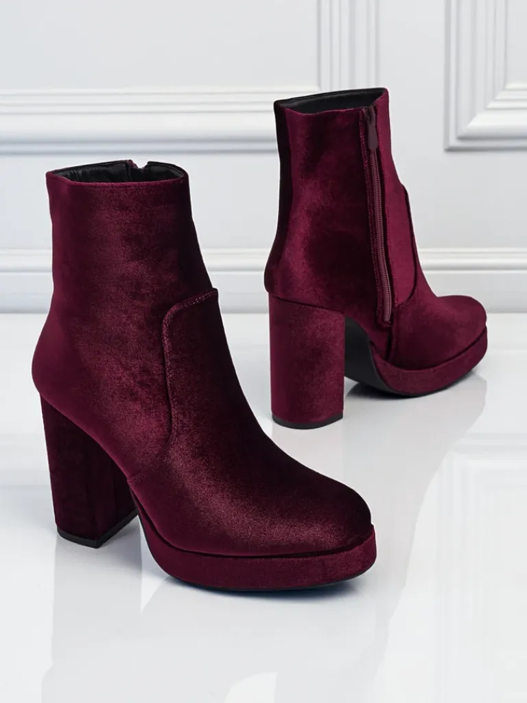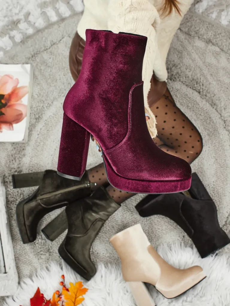 Online Botki damskie na słupku al’la Welur Miss Botki Z Delikatnym Ociepleniem|Botki Na Słupku