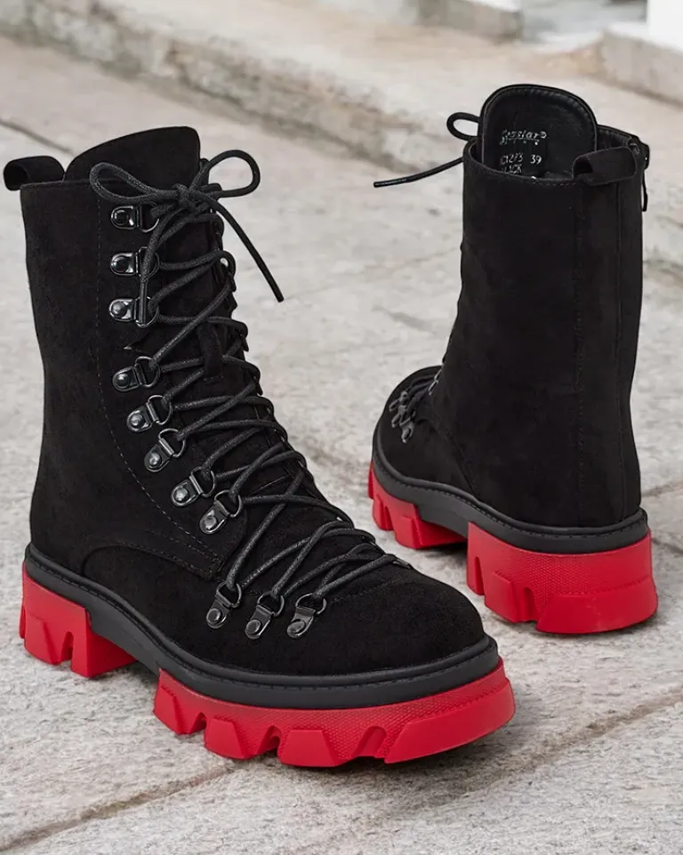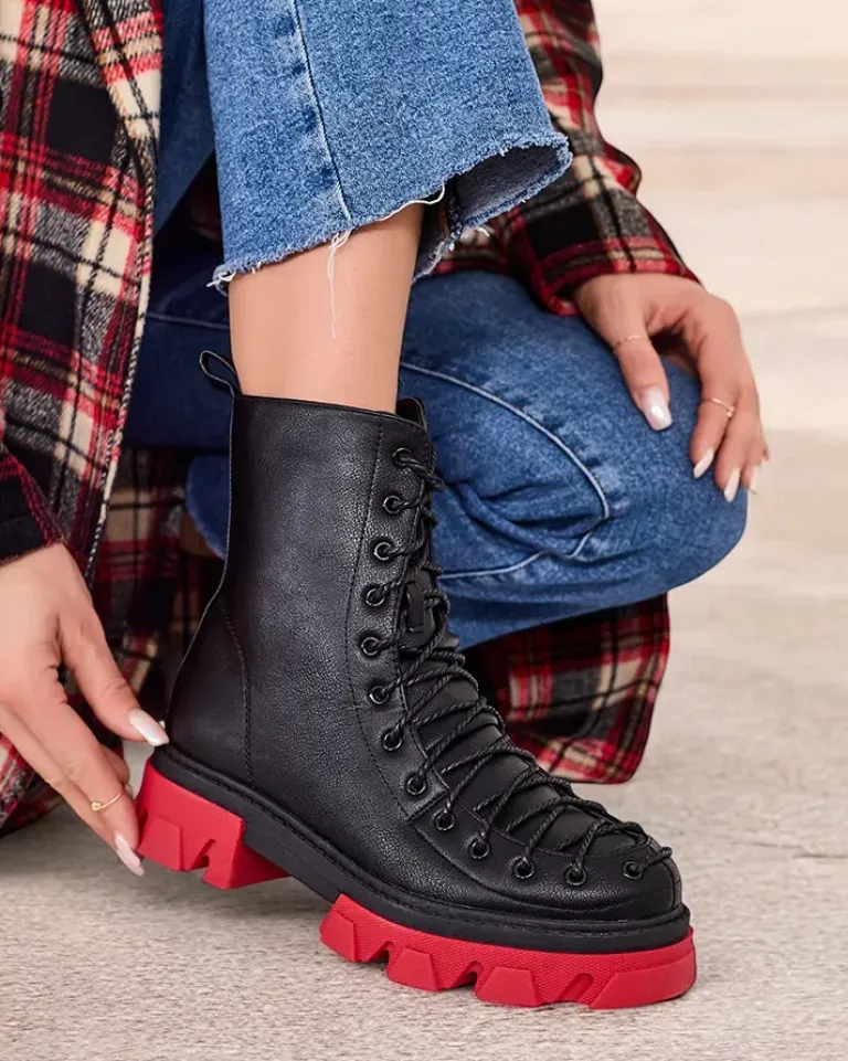 - Stylowe botki typu workery wykonane ze skóry ekologicznej. Buty są sznurowane posiadają również zapięcie na zamek . Model posiada grubszą podeszwę oraz futerkowe wypełnienie. Idealne na jesień!