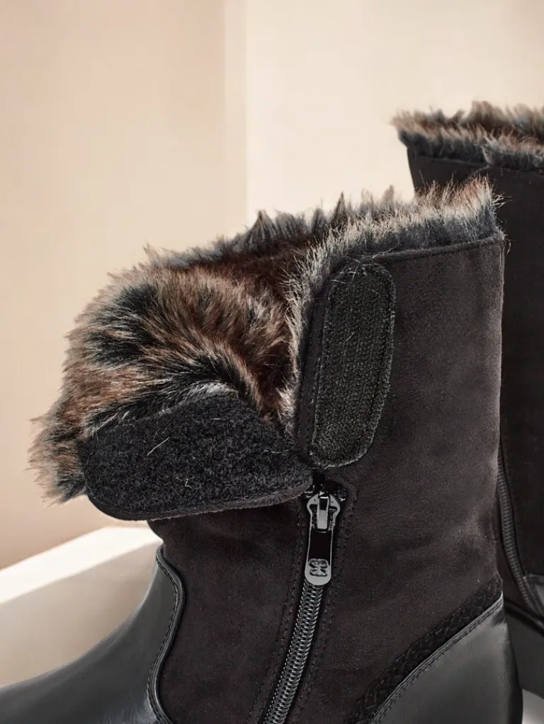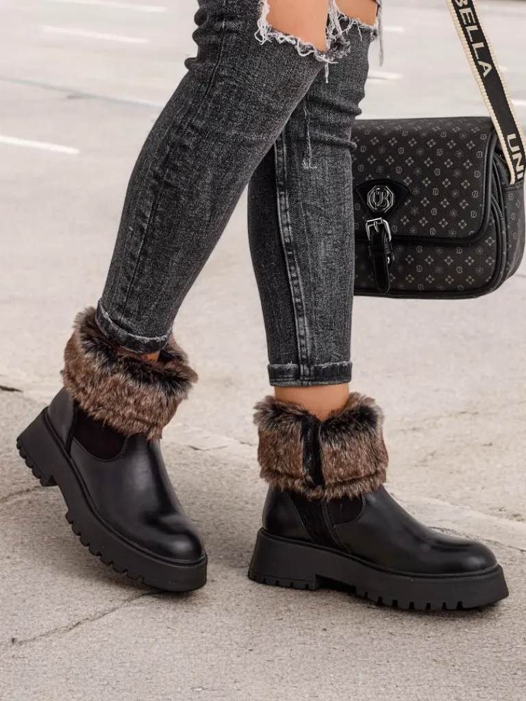 - Rewelacyjne botki damskie na płaskim obcasie, wykonane są z połączenia eko skóry i zamszowej eko skóry. Wnętrze z delikatnym futerkiem gwarantuje komfort i ciepło nawet w chłodniejsze dni. Zapięcie na zamek zapewniają idealne dopasowanie!