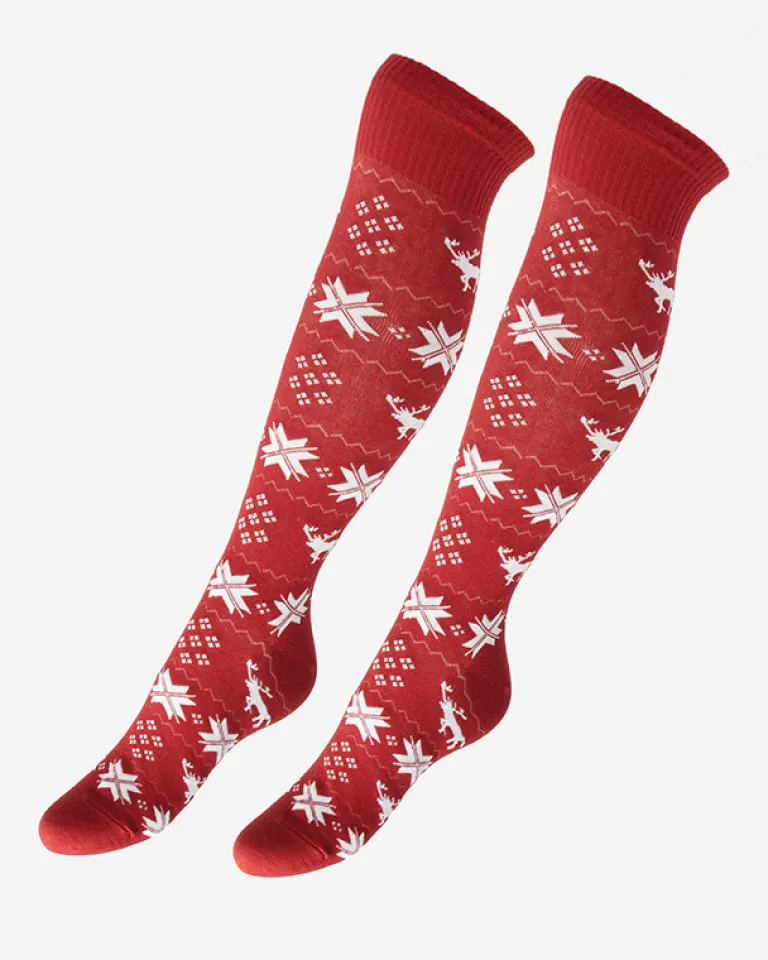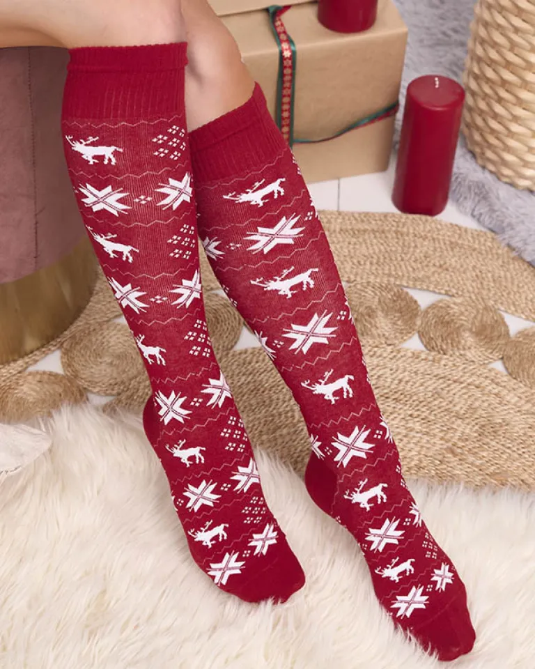- Przeurocze damskie długie skarpety, wykonane z elastycznej tkaniny bawełnianej wykończonej świątecznym wzorem. Ciepłe i wygodne – to doskonała propozycja na prezent!