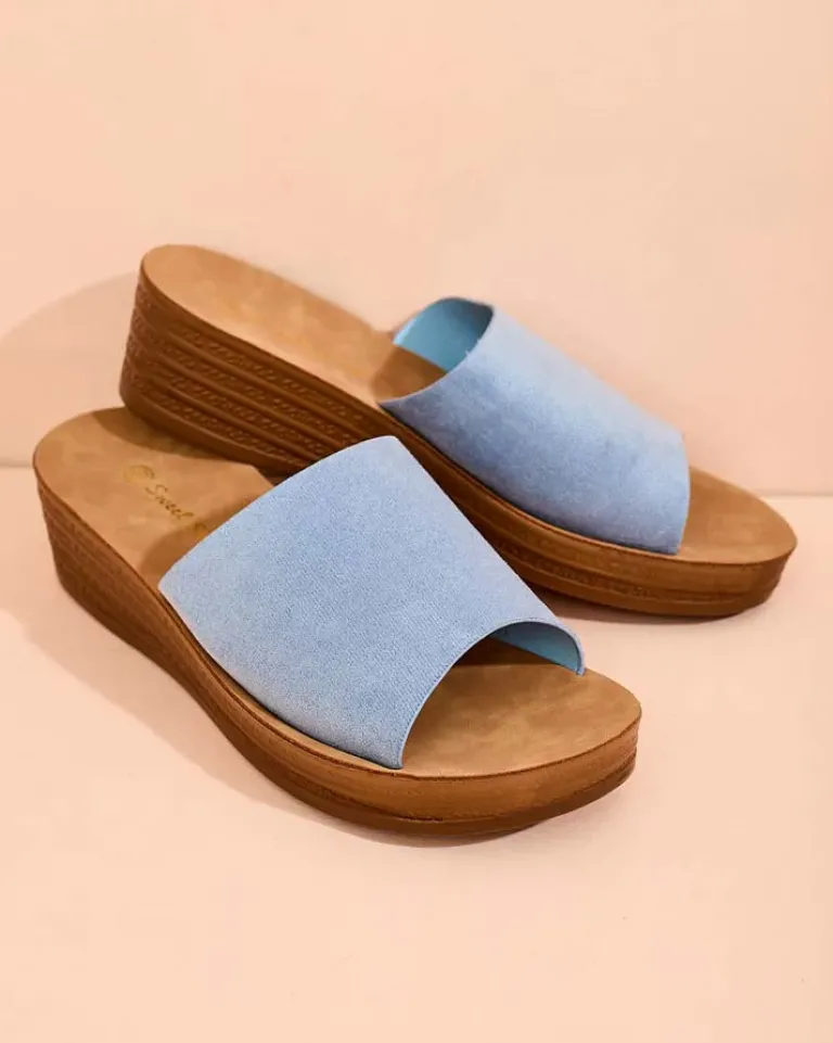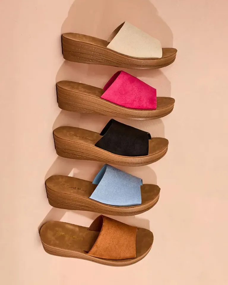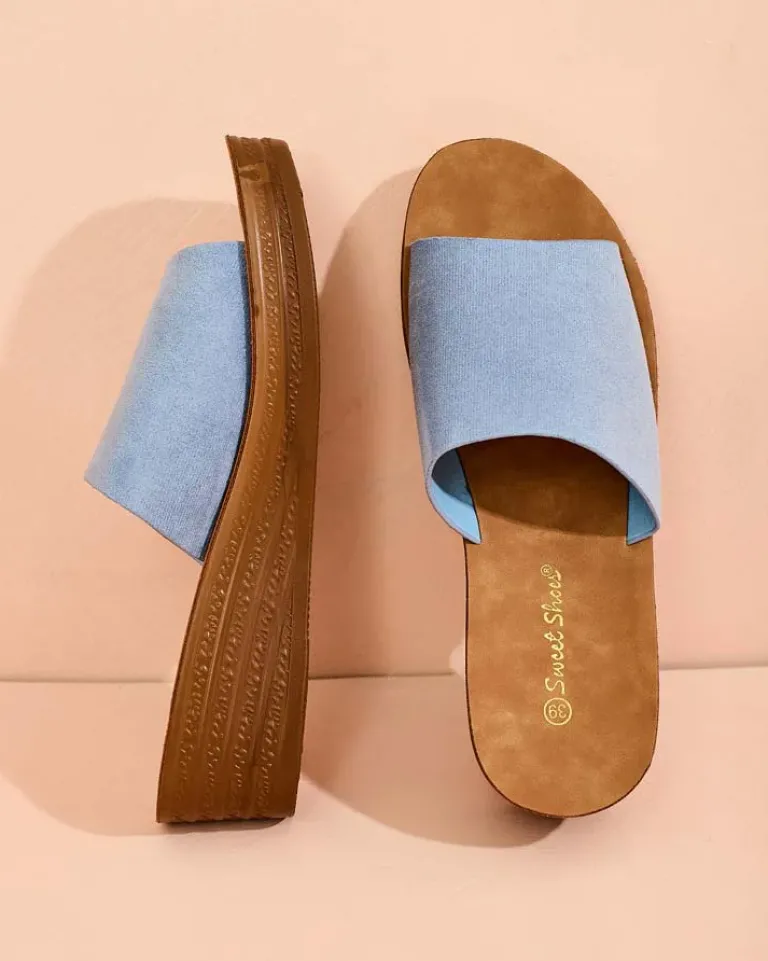 - Klapki damskie wykonane z zamszowej eko skóry i eko skórzanej wkładki. Niski koturn i platforma dodaje uroku i charakteru. Ciesz się wygodą i stylem zabierając te obuwie na wakacje!