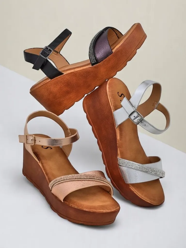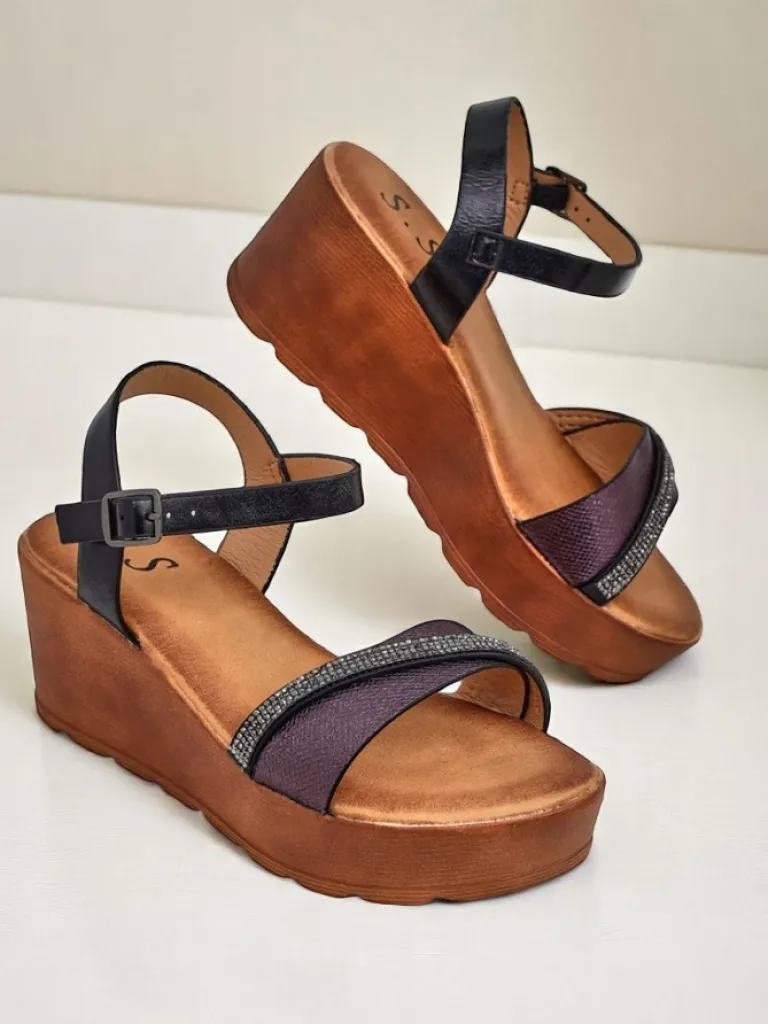 - Odkryj elegancję z sandałami Aurora Glow. Zjawiskowe na koturnie, ozdobione błyszczącymi cyrkoniami i subtelnym brokatem, idealnie podkreślają letni blask. Połączenie komfortu i luksusowego wyglądu – doskonałe na każdą wyjątkową okazję!