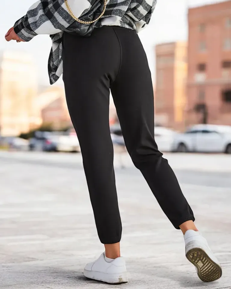 - Klasyczne spodnie dresowe wykonane z miękkiej, lekkiej tkaniny. Szeroka elastyczna guma w pasie pozwala na dostosowanie spodni do swojego indywidualnego kształtu. Dodatkowo, dwie wsuwane kieszenie z przodu.