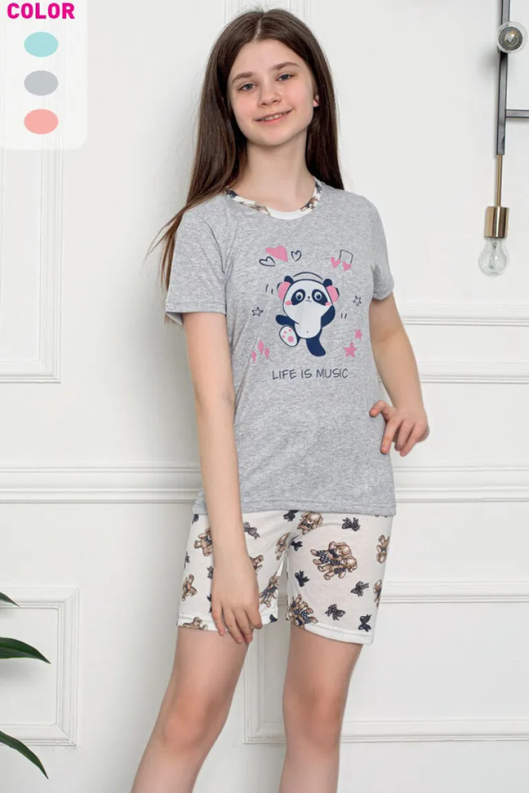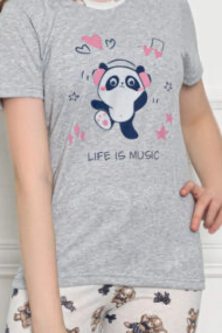 - Dwuczęściowa dziecięca piżama, wykonana ze 100% miękkiej bawełny. Komplet posiada ozdobny print. Ten model to idealny wybór na cieplejsze noce! UWAGA: Dokładność pomiaru (+/-) 1 cm.