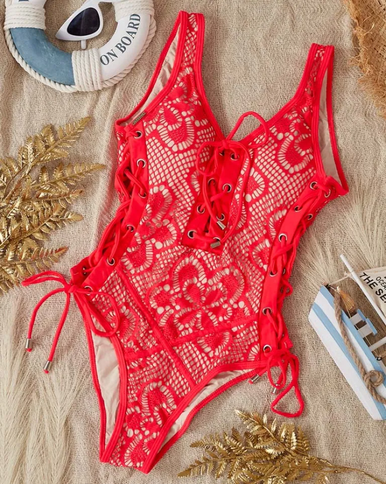 - Wyjątkowy jednoczęściowy kostium kąpielowy damski. Produkt bez zapięcia, posiada plecione zdobienia na przodzie i po bokach. Całość dopełnia piękna koronka! Idealnie podkreśla Twoja sylwetkę! UWAGA: Dokładność pomiaru (+/-) 1 cm.