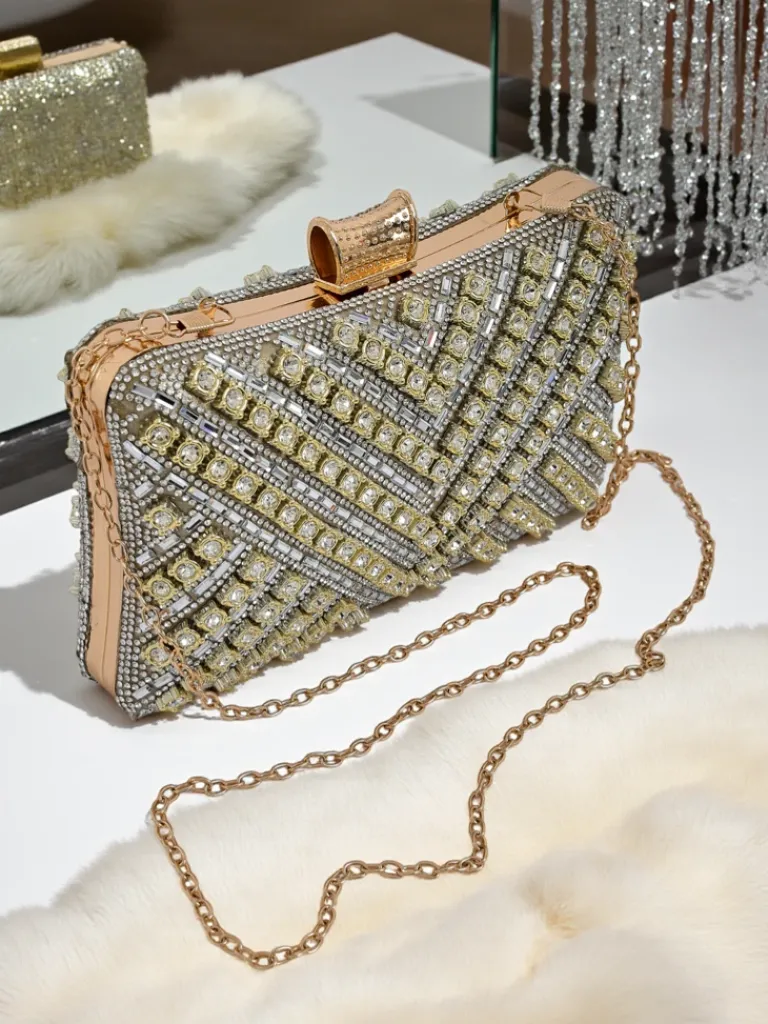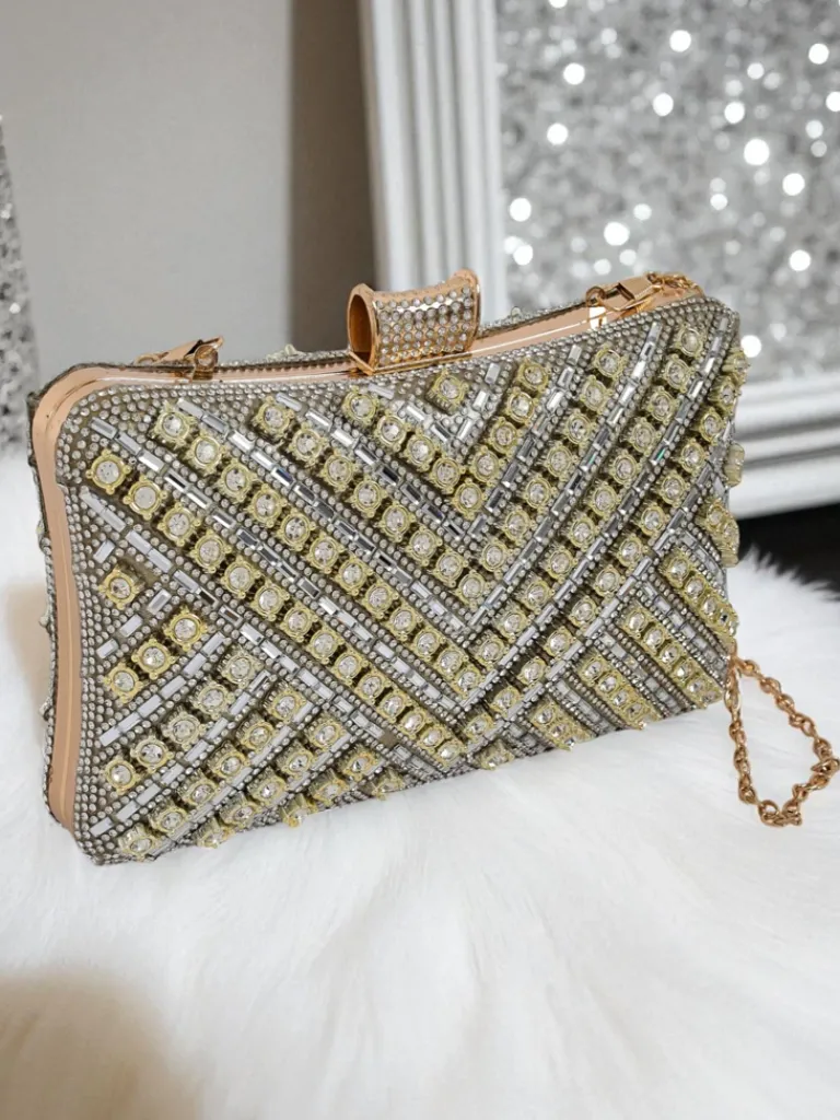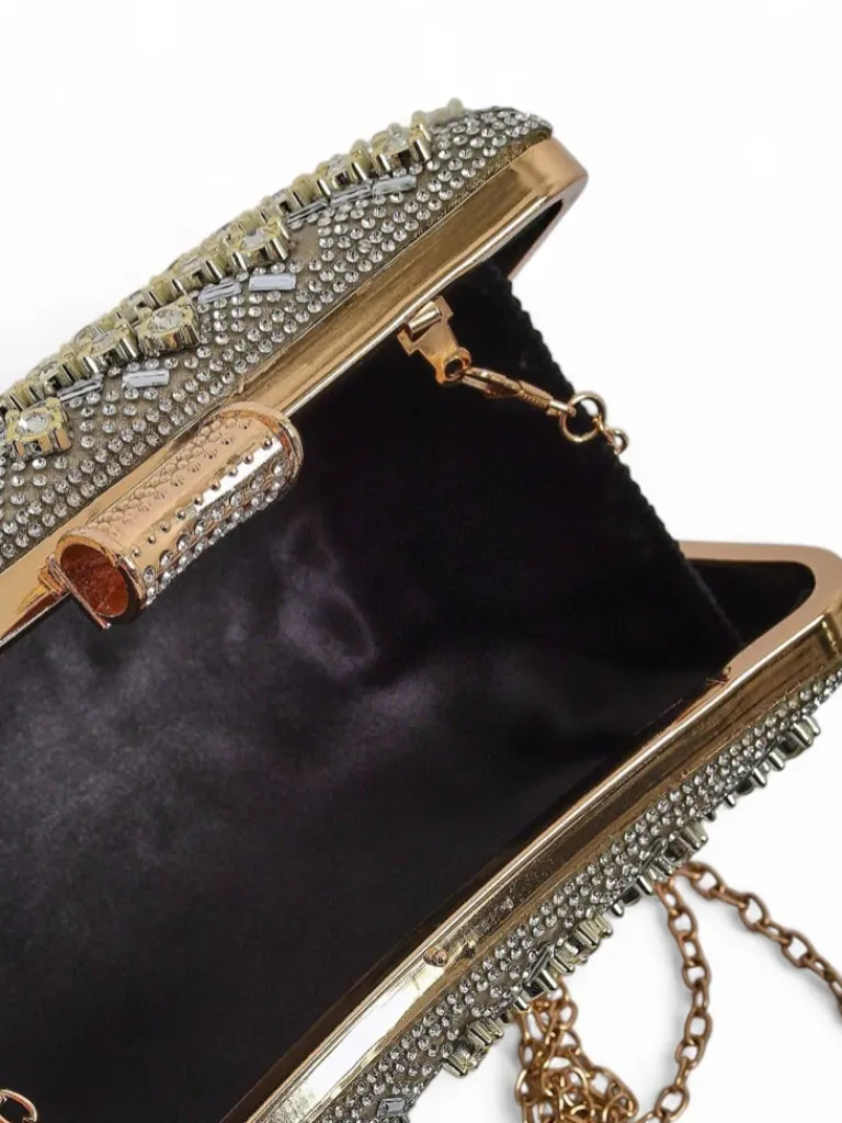 - Wieczorowa kopertówka pełna blasku, zdobiona lśniącymi cyrkoniami. Delikatny łańcuszek dodaje lekkości i klasy. Idealna na wielkie wyjścia – przyciąga spojrzenia i dopełnia każdą stylizację.