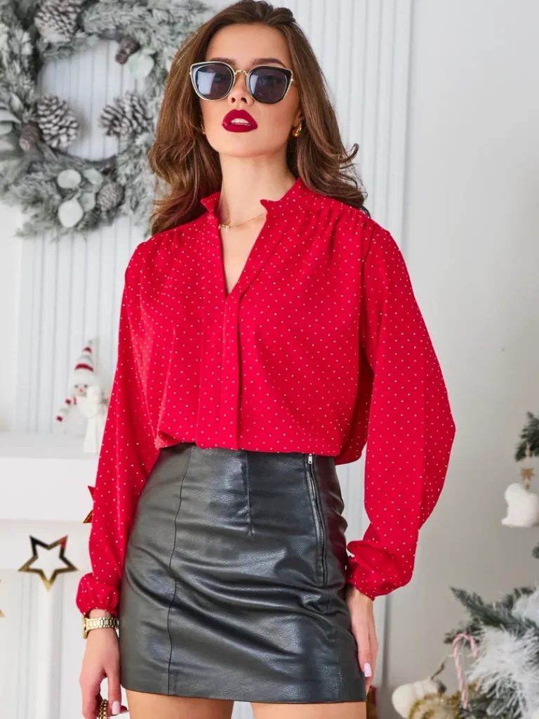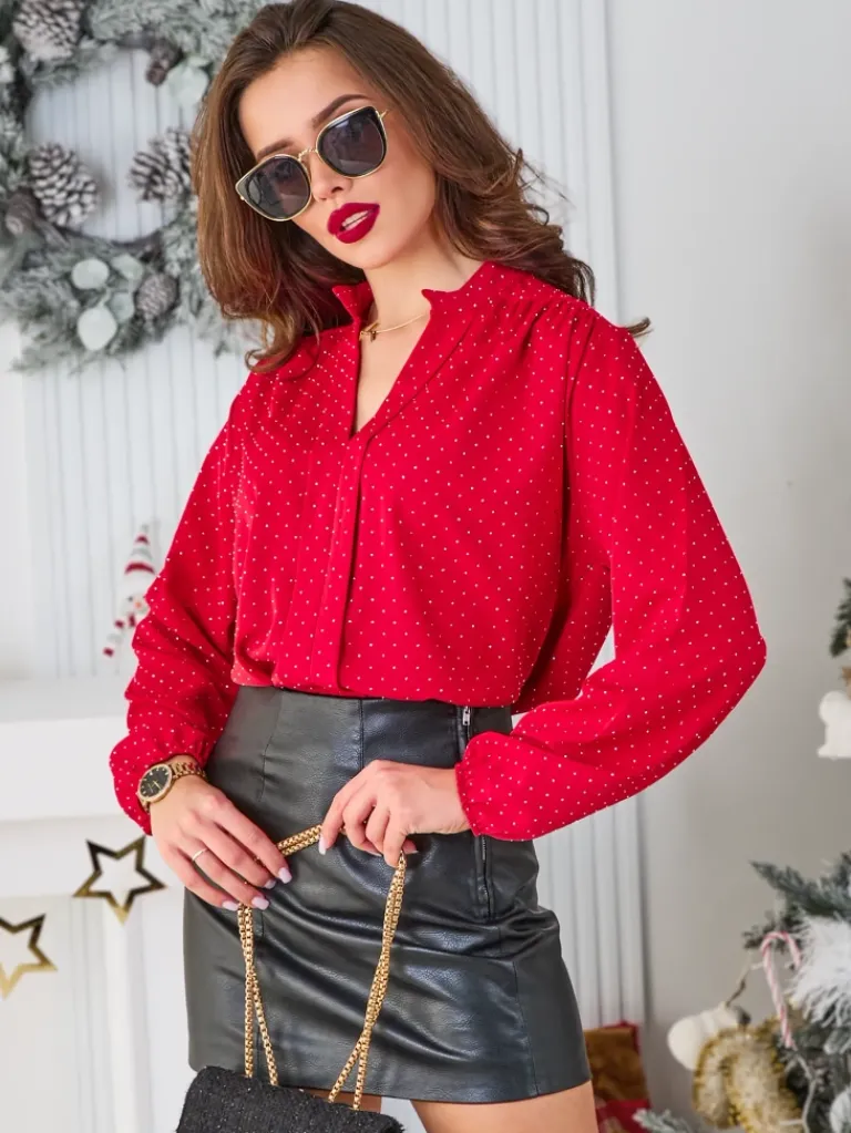 - Rewelacyjna damska koszula z cyrkoniami. Model posiada długie rękawami oraz dekoltem w serek. Must have w szafie każdej kobiety!