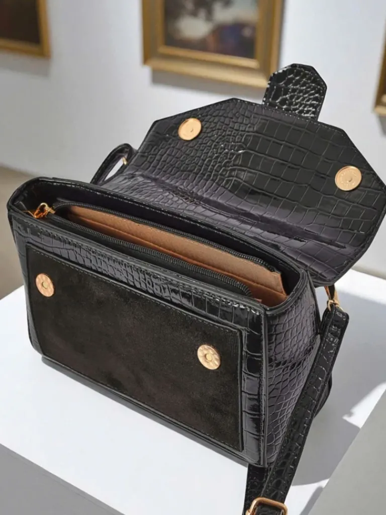 - Lakierowana torebka z eko skóry z eleganckim tłoczeniem. 1 pojemna komora i odpinany, regulowany pasek zapewniają wygodę noszenia. Stylowy wybór na co dzień i na wyjątkowe okazje. Klasa, która przyciąga spojrzenia.