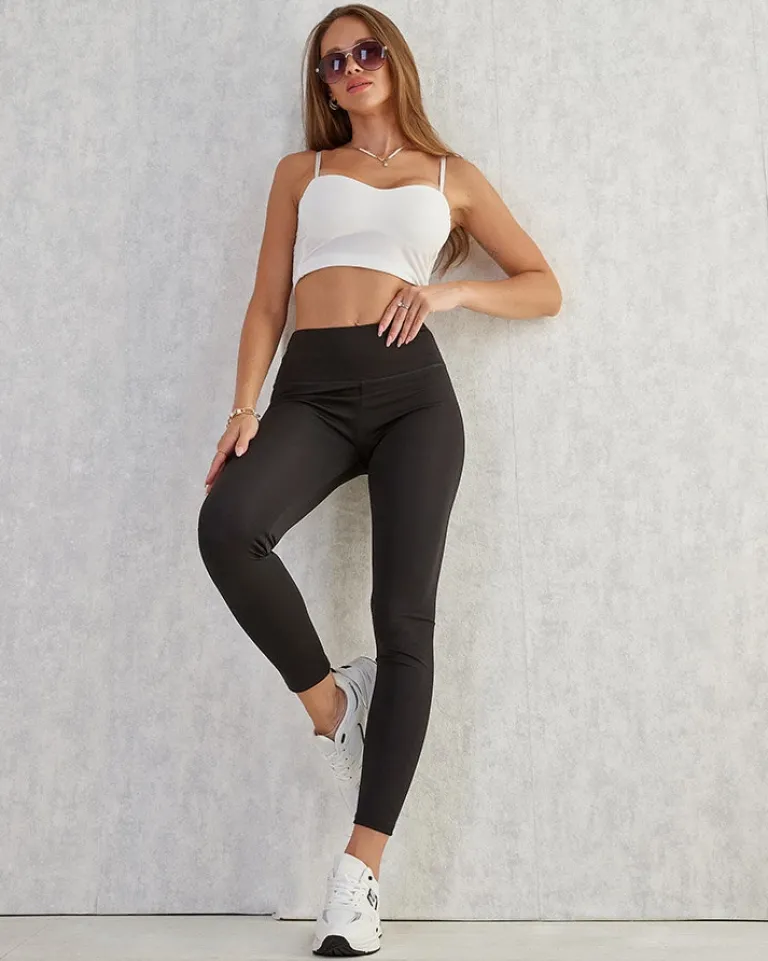 - Damskie legginsy wykonane z lekkiego materiału tkaninowego. Model posiada szeroką i elastyczną gumę w pasie. Idealne na aktywny czas! UWAGA: Dokładność pomiaru (+/-) 1 cm.