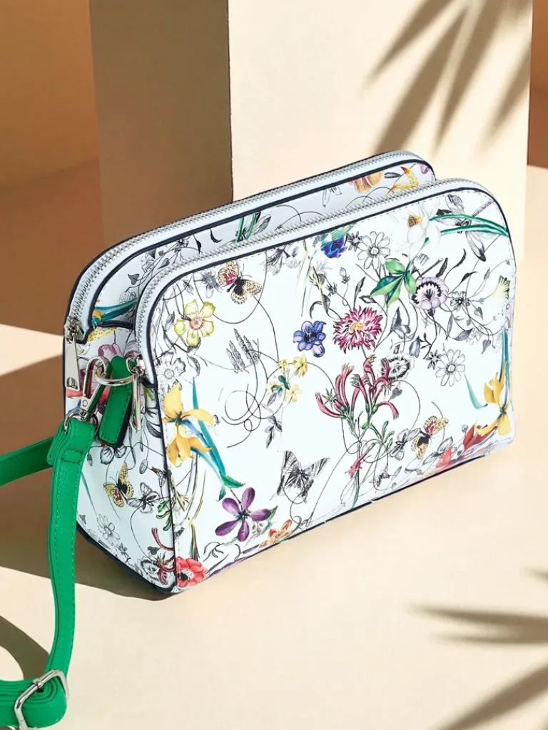 - Mała, okrągła torebka z eko skóry z trzema komorami i dodatkowymi kieszonkami – idealna na najpotrzebniejsze drobiazgi. Wyposażona w regulowany pasek, który zapewnia wygodę noszenia. Stylowa, praktyczna i idealna do codziennych stylizacji.