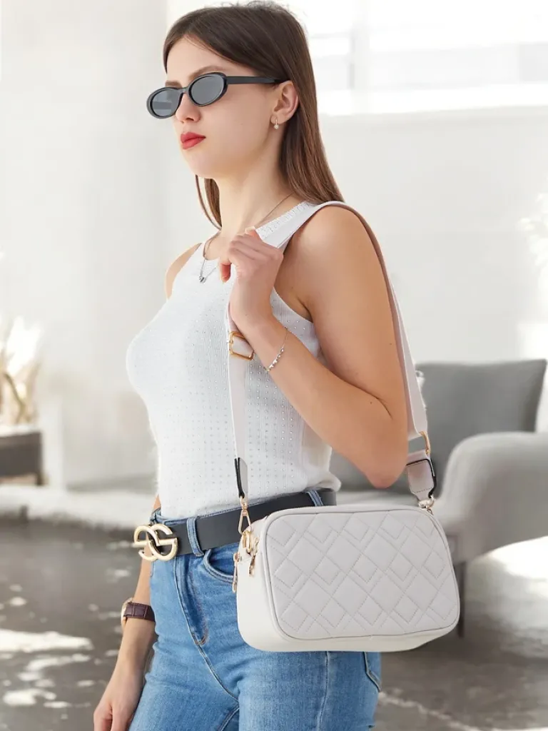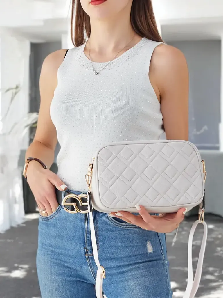- Damska pikowana torebka zapinana na zamek, wykonana ze skóry ekologicznej.