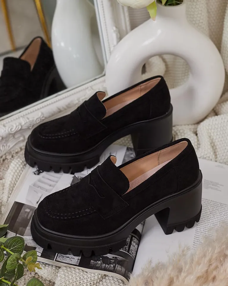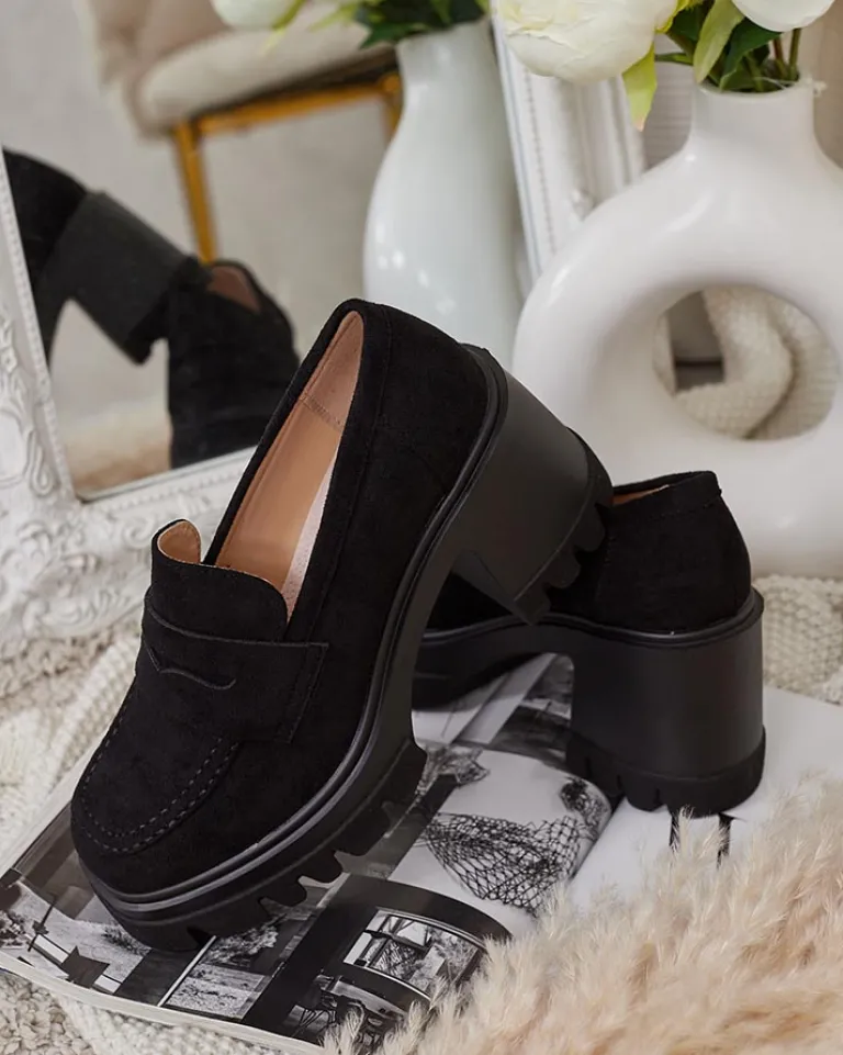 - Przepiękne damskie mokasyny na wysokim słupku. Model w tylu casual i jest wykonany ze skóry ekologicznej zamszowej i wkładki ze skóry naturalnej. Nosek zaokrąglony. Idealna baza dla wielu codziennych looków!