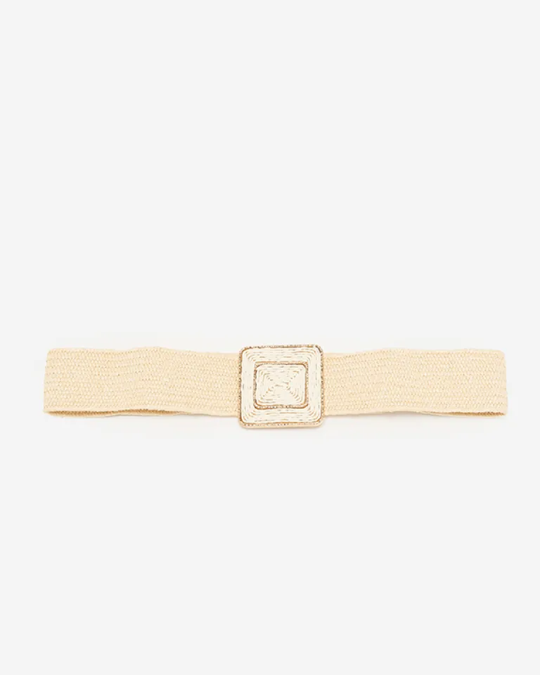 - Wyjątkowy pasek damski z dużą klamrą, wykonany z plecionego i elastycznego materiału sztucznego. Super dodatek do Twoich letnich outfitów!