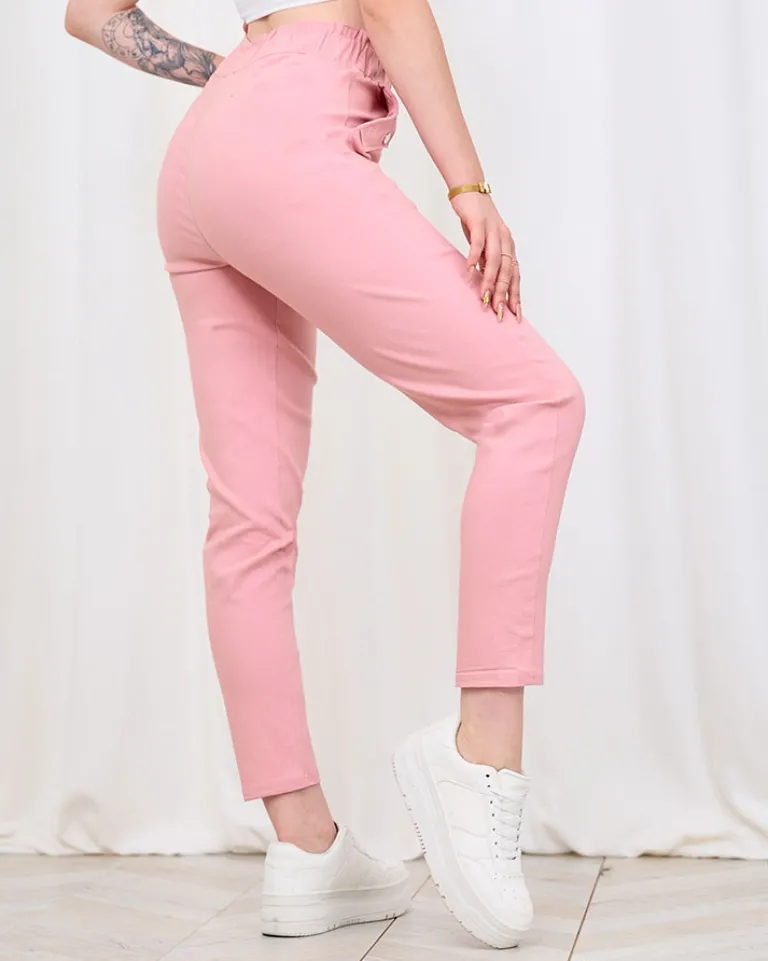 - Proste spodnie damskie wykonane z bawełnianej tkaniny. Model posiada gumę w pasie oraz dwie kieszenie. Wygodne i komfortowe! UWAGA: Dokładność pomiaru (+/-) 1 cm.
