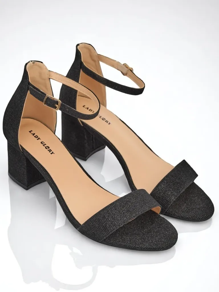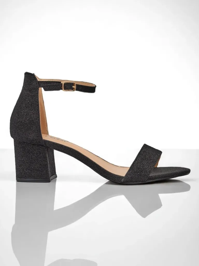 - Sandałki na słupku wykonane z tkaniny i eko skórzanej wkładki. Połączenie stylu i wygody. Słupek nadaje subtelnej elegancji, a sprzączka ułatwia ich zakładanie. Całość zdobiona brokatem. Doskonałe na wieczorne wyjścia!