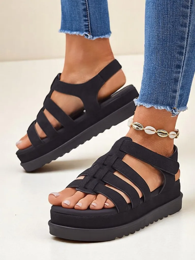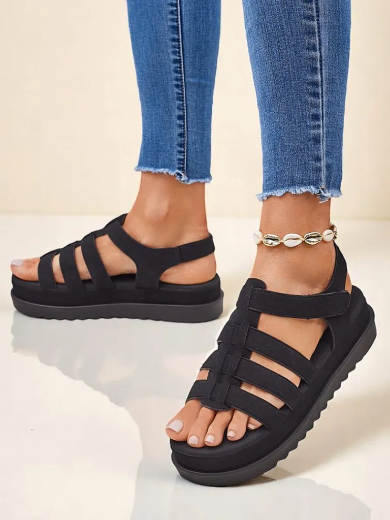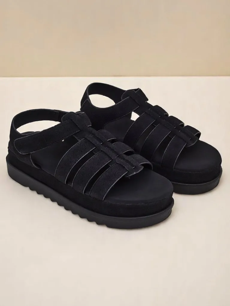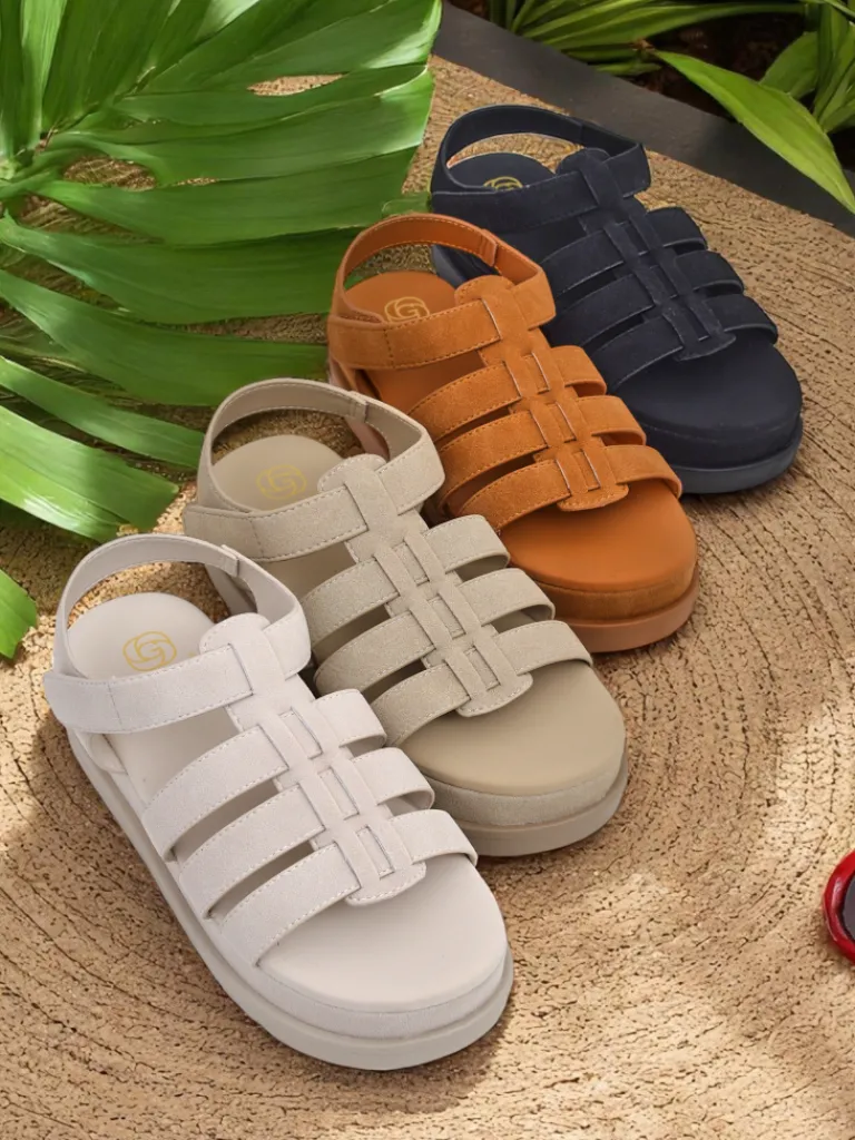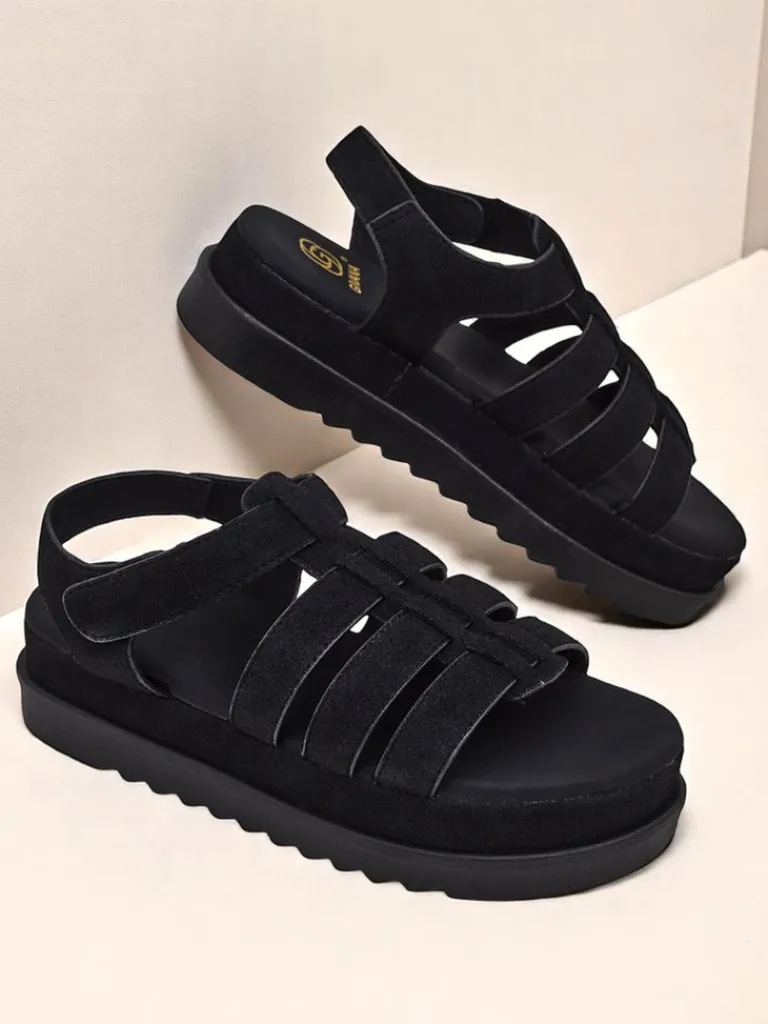 - Damskie sandały w stylu rzymianek wykonane z miękkiego eko zamszu. Wkładka z eko skóry zapewnia komfort, a zapięcie na rzep ułatwia dopasowanie. Idealne do letnich stylizacji.