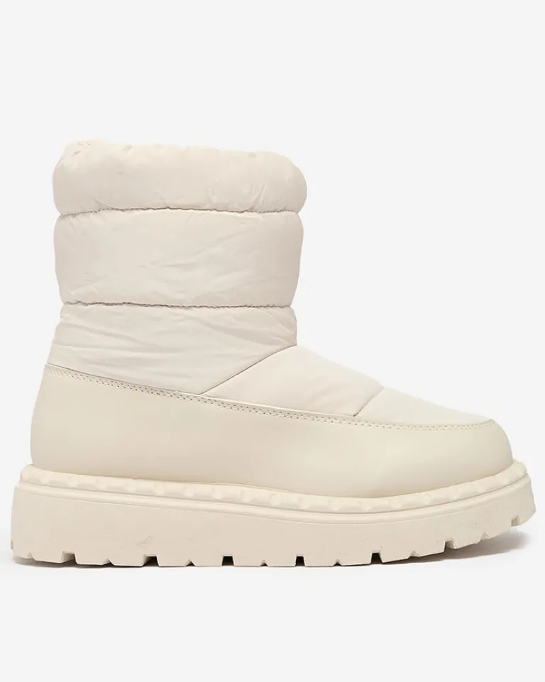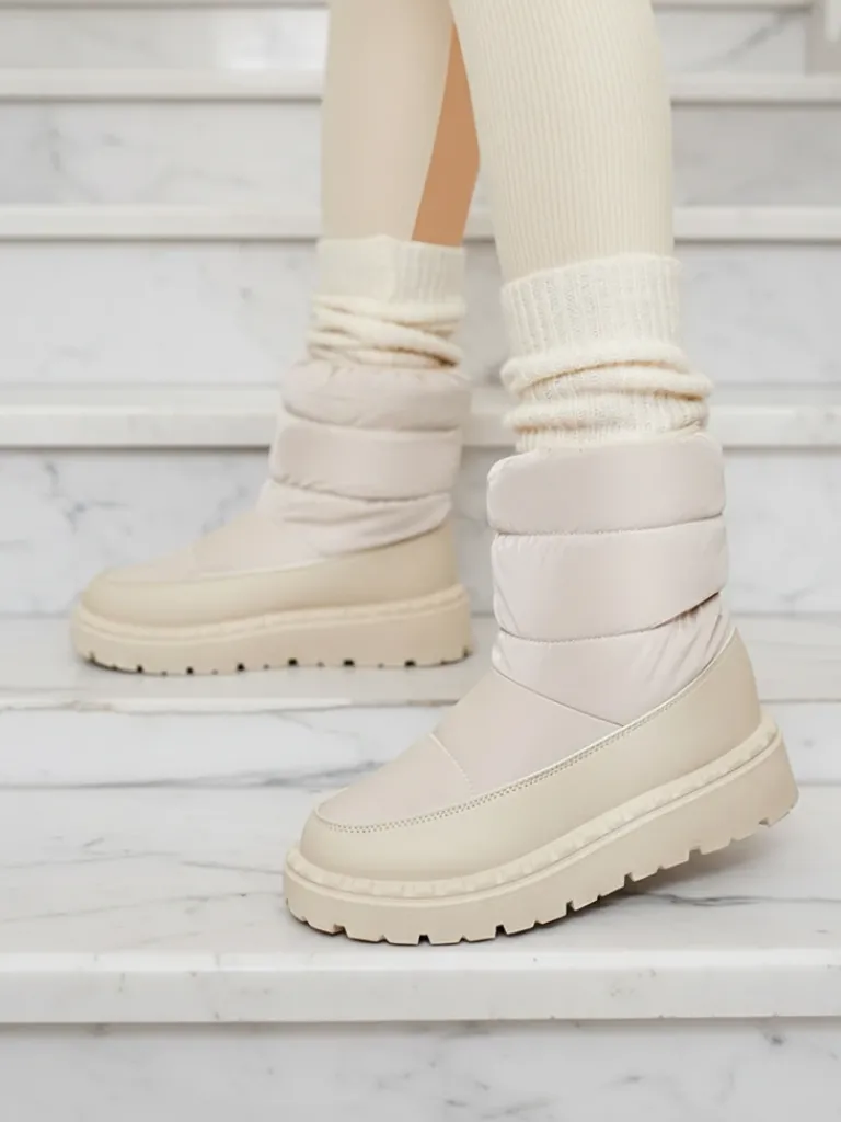 - Wyjątkowe damskie obuwie typu śniegowce. Cholewka wykonaną z materiału a’la cerata i wstawkami ze skóry ekologicznej. W środku ocieplenie w formie futerka, obuwie posiada ściągacz. Idealne na zimowy czas!