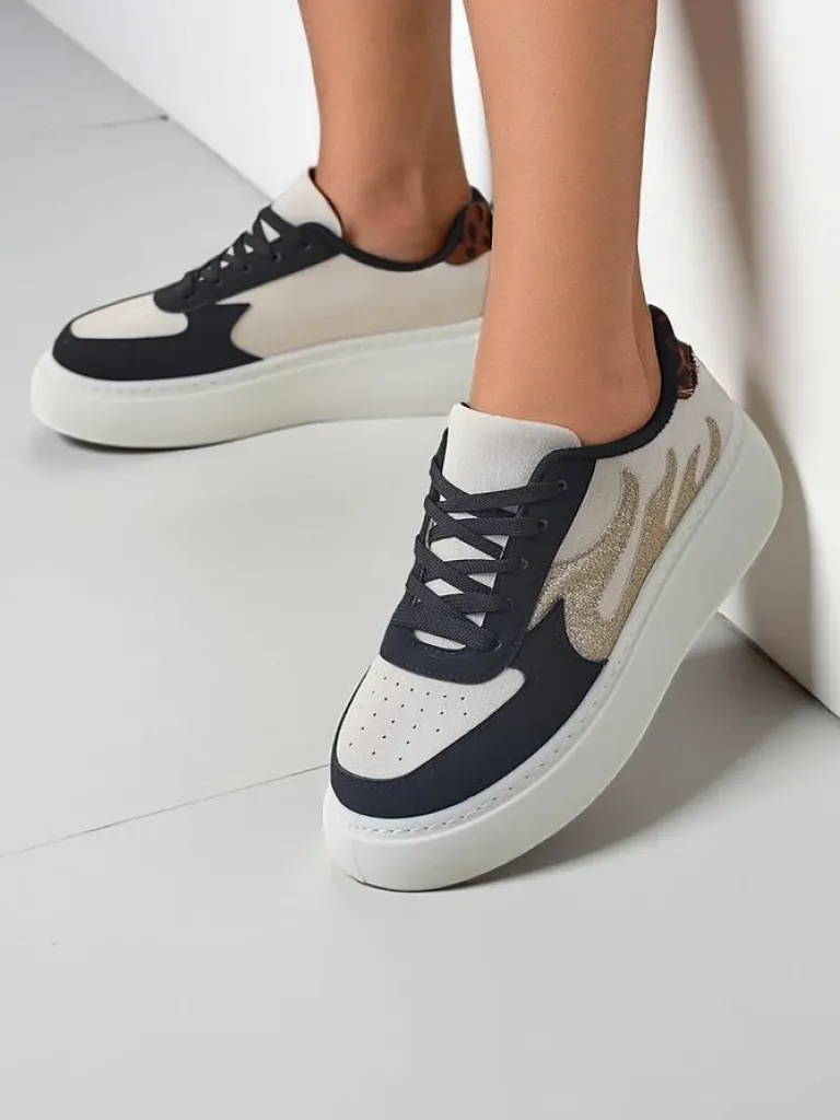 - Fenomenalne sneakersy damskie na platformie – perfekcyjne połączenie stylu i komfortu. Obuwie wykonane z eko skóry i eko zamszu. Model sznurowany, posiada tkaninową wkładkę. Idealne dla aktywnych osób!