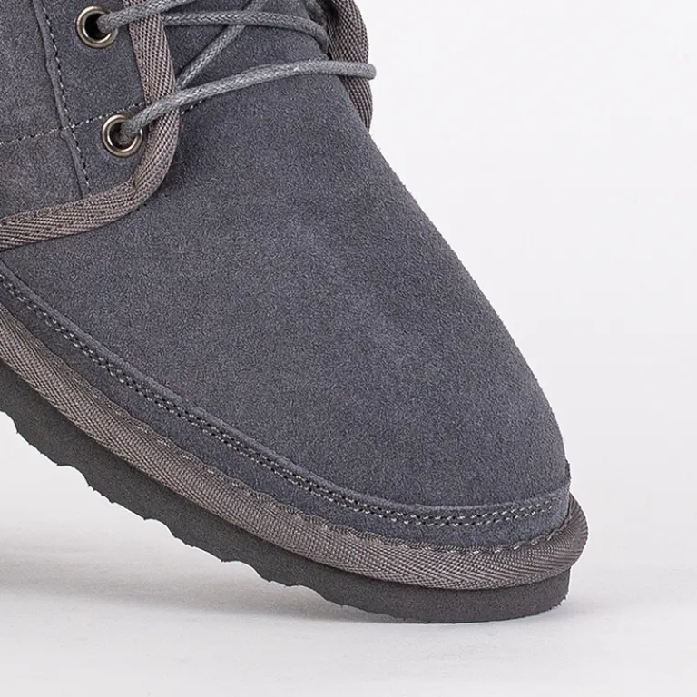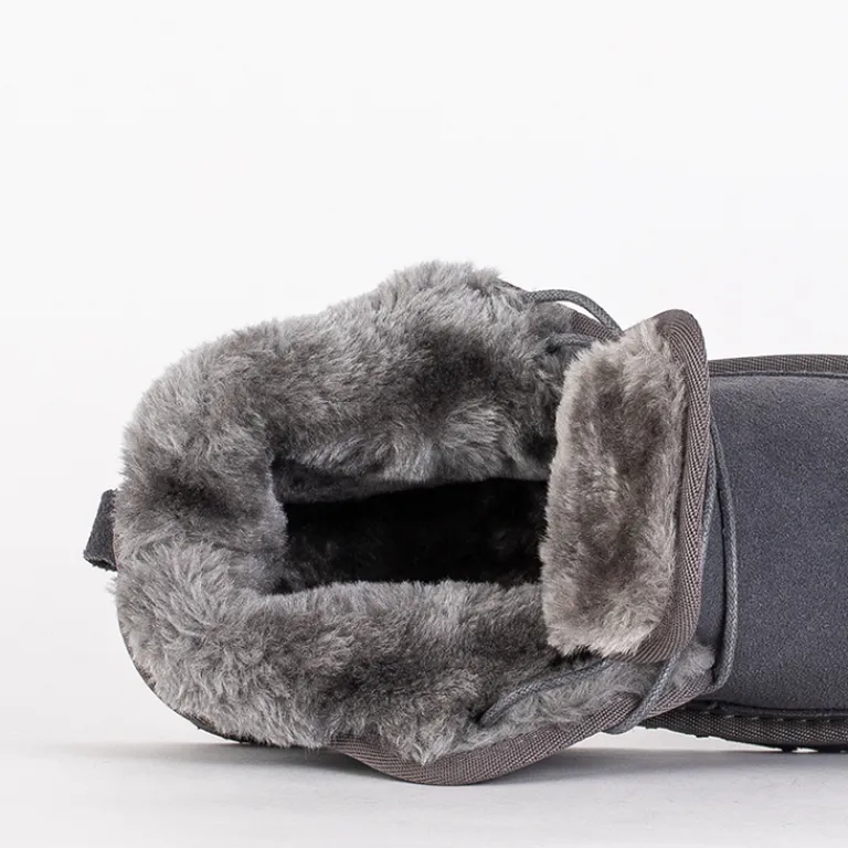 - Cudowne dziecięce śniegowce na płaskiej podeszwie, wykonane z miękkiego zamszu naturalnego. Środek buta jest ocieplony miłym w dotyku futerkiem. Model sznurowany. Doskonałe na chłodniejsze dni! SZARE BUTY ZIMOWE DZIECIĘCE ŚNIEGOWCE TIBILIS