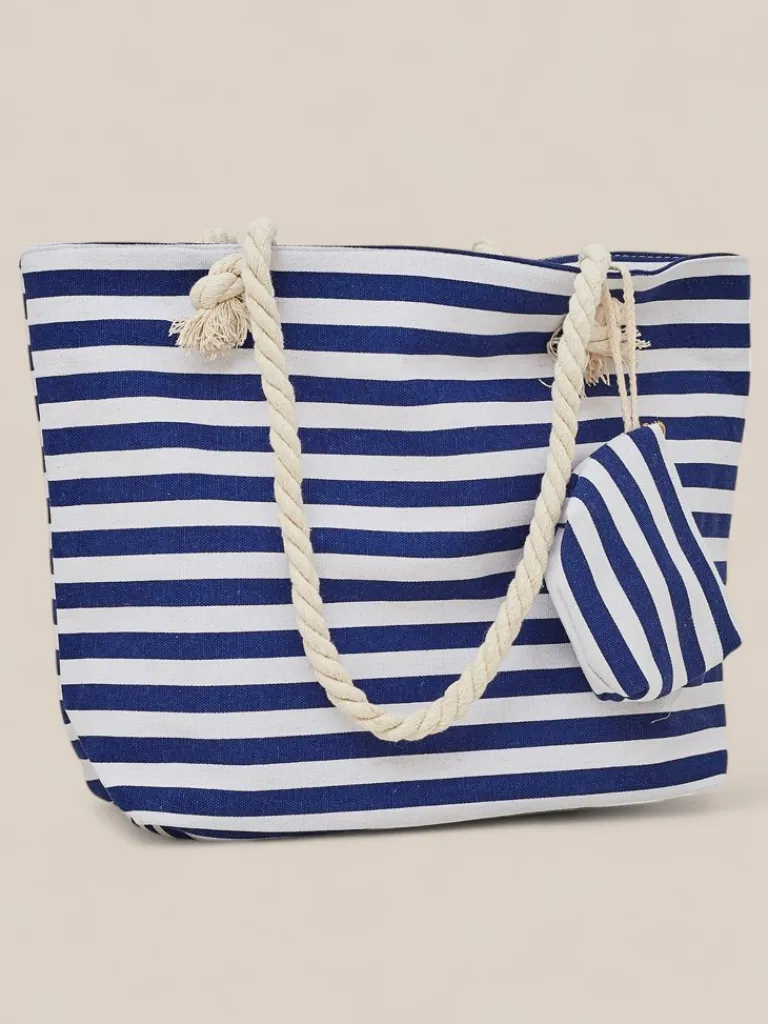- Duża, materiałowa torebka damska z klasycznym wzorem w paski. 1 komora, zapięcie na zamek. Lekka, pojemna i stylowa – idealna na zakupy i codzienne wyjścia!