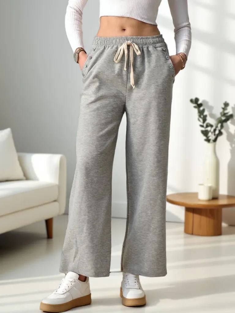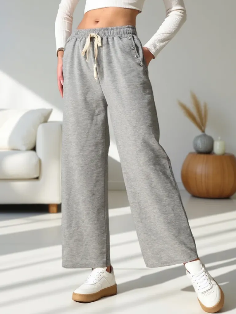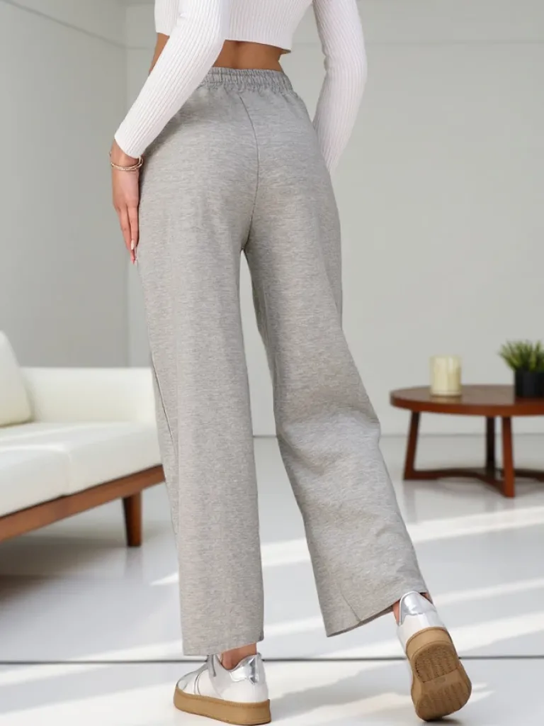 Online Wiskozowe szerokie spodnie damskie dresowe z cyrkoniami Spodnie Materiałowe|Spodnie Dresowe