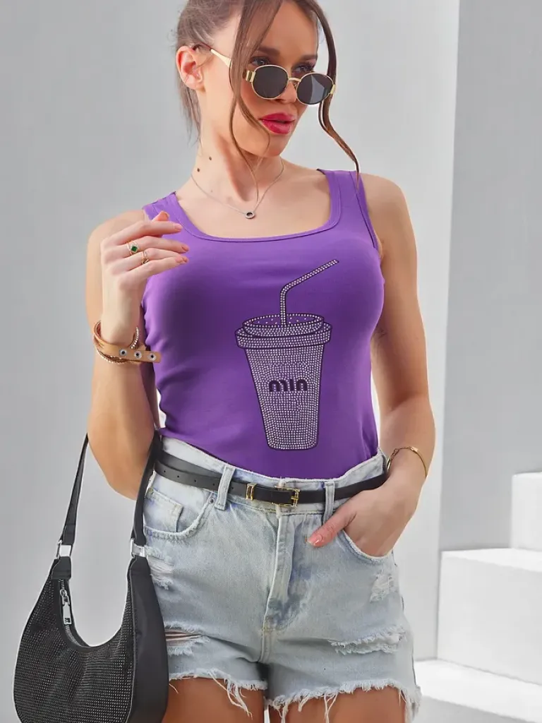 Outlet Bawełniana bluzka damska na ramiączkach z kubeczkiem z cyrkonii Bluzki / Koszule / Koszulki