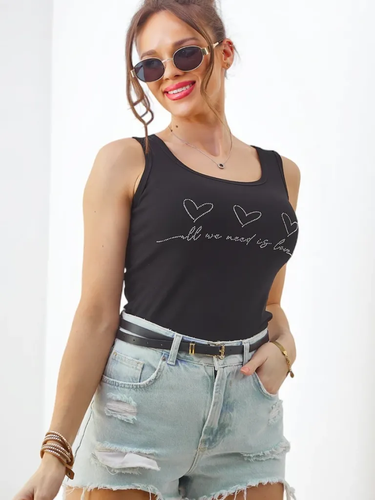 Outlet Bawełniana bluzka damska na ramiączkach z seruszkami Bluzki / Koszule / Koszulki