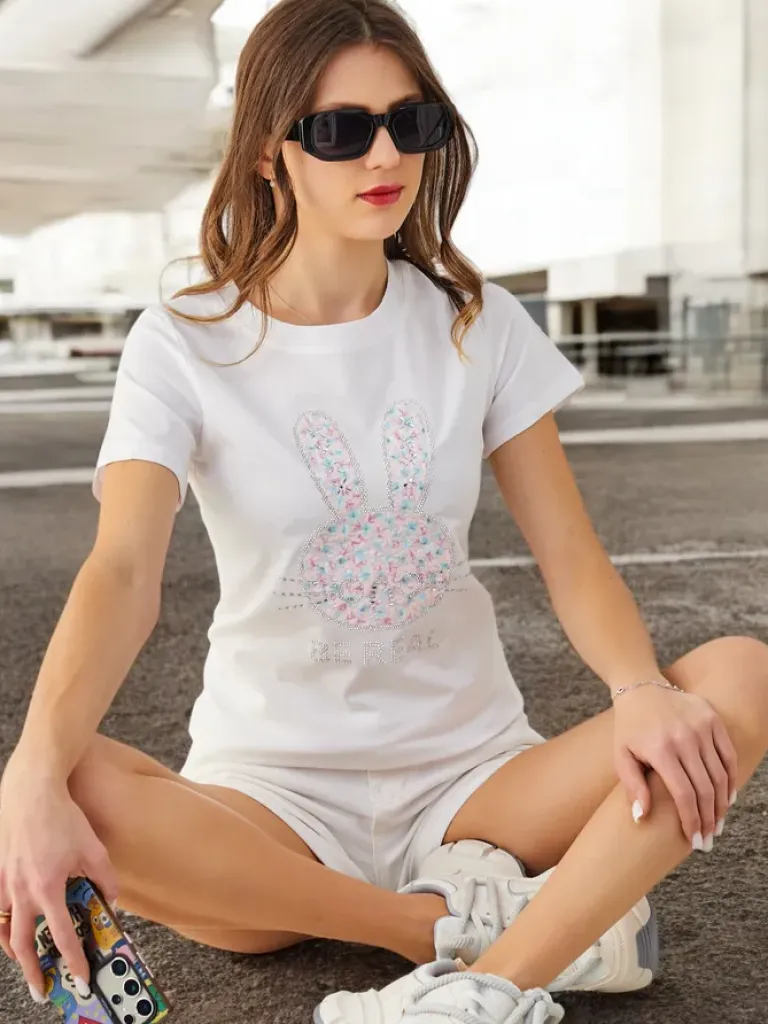 Outlet Bawełniany damski t-shirt Bunny Say Be Real Bluzki / Koszule / Koszulki