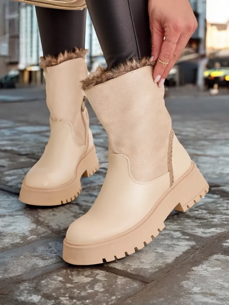 - Rewelacyjne botki damskie na płaskim obcasie, wykonane są z połączenia eko skóry i zamszowej eko skóry. Wnętrze z delikatnym futerkiem gwarantuje komfort i ciepło nawet w chłodniejsze dni. Zapięcie na zamek zapewniają idealne dopasowanie!