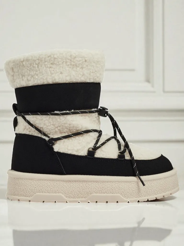 - Świetne damskie zimowe buty typu śniegowce na grubszej podeszwie. Cholewka wykonana jest ze skóry ekologicznej nubuk oraz z materiau a’la kożuszek, środek ocieplony futerkiem. Idealna baza na zimę!